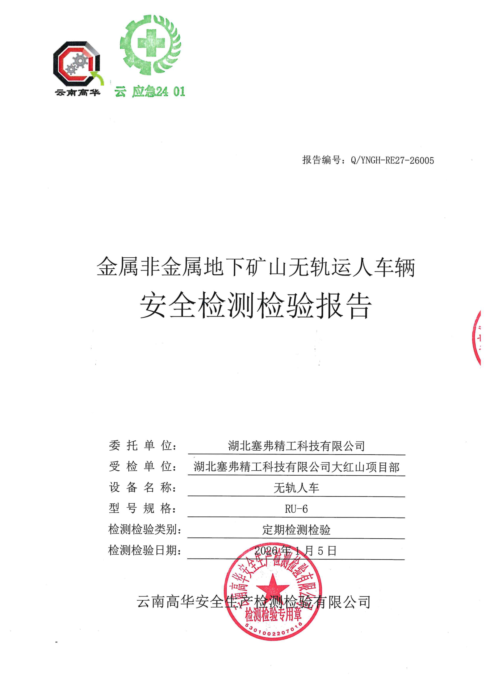 金属非金属地下矿山无轨运人车辆安全检测检验报告
