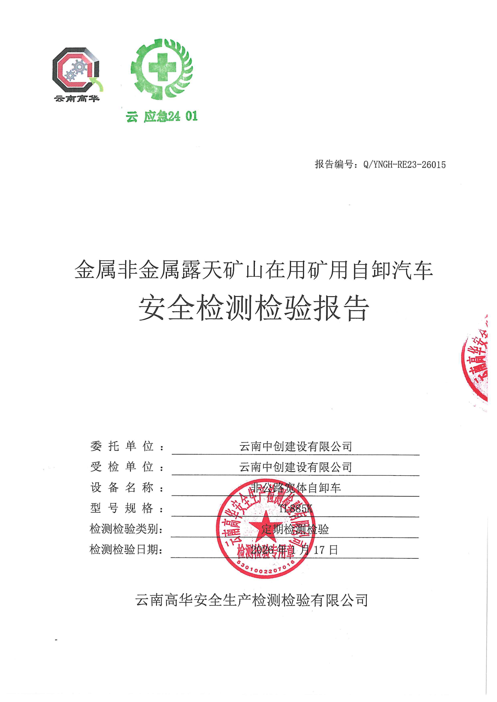 金属非金属矿山在用矿用自卸汽车安全检测检验报告