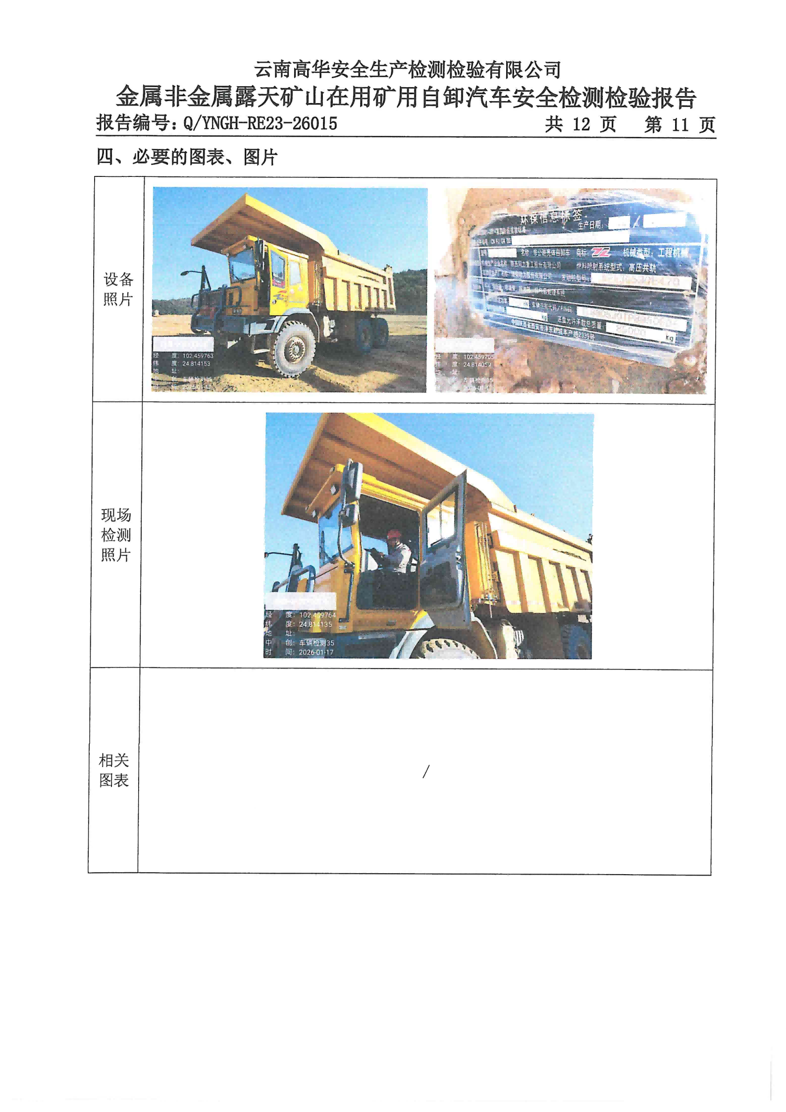 金属非金属露天矿山在用矿用自卸汽车安全检测检验报告