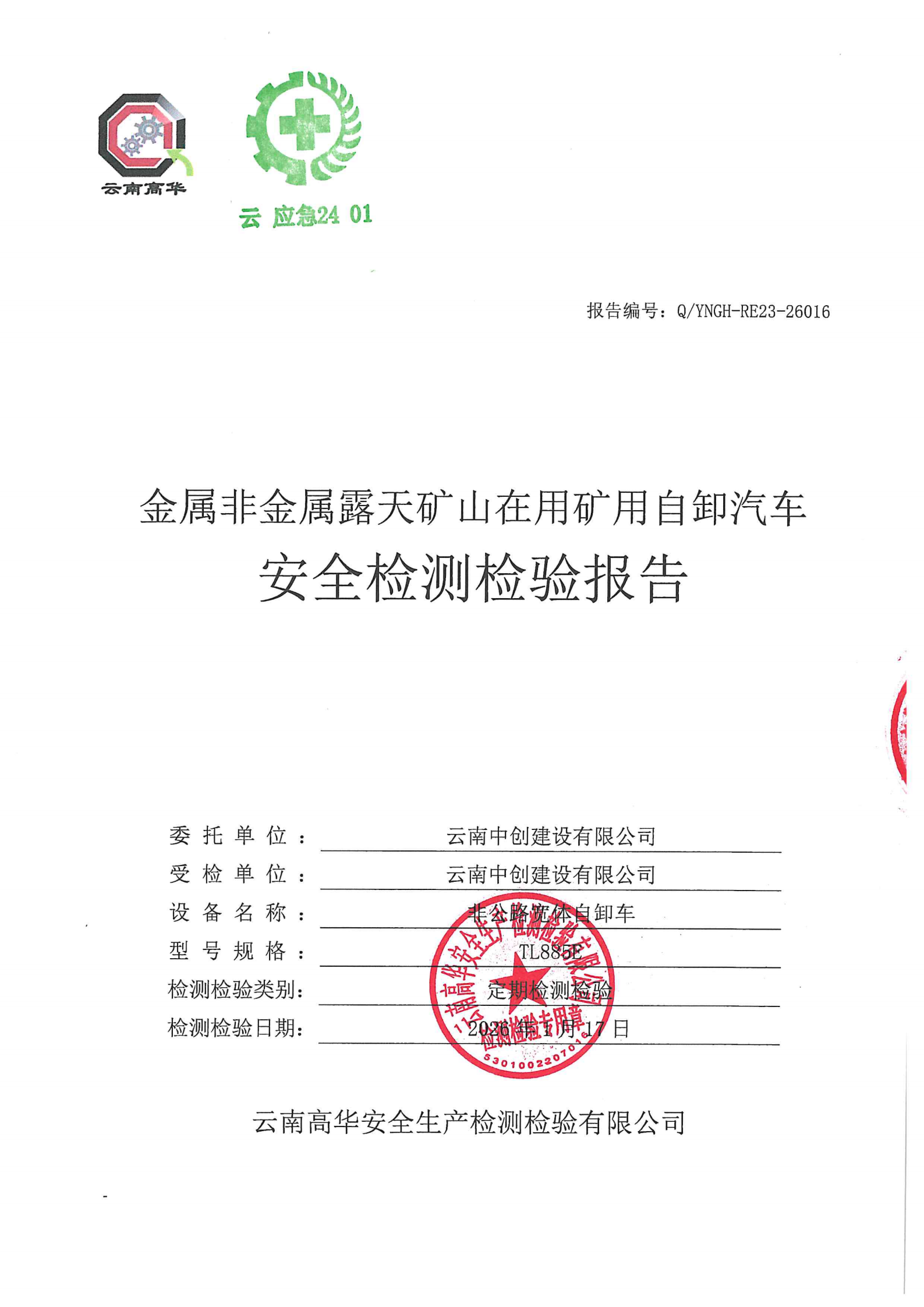金属非金属矿山在用矿用自卸汽车安全检测检验报告