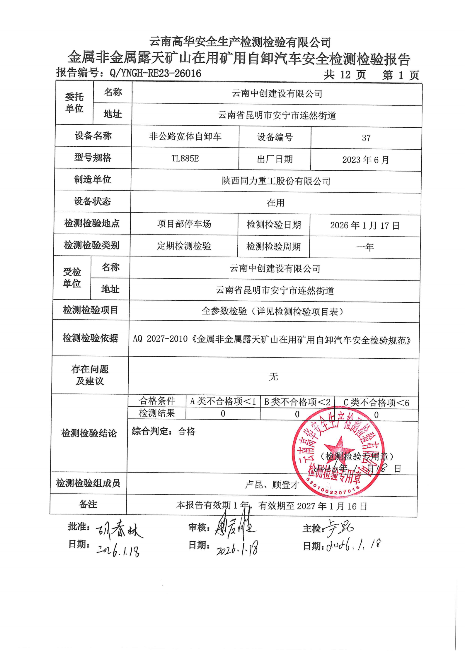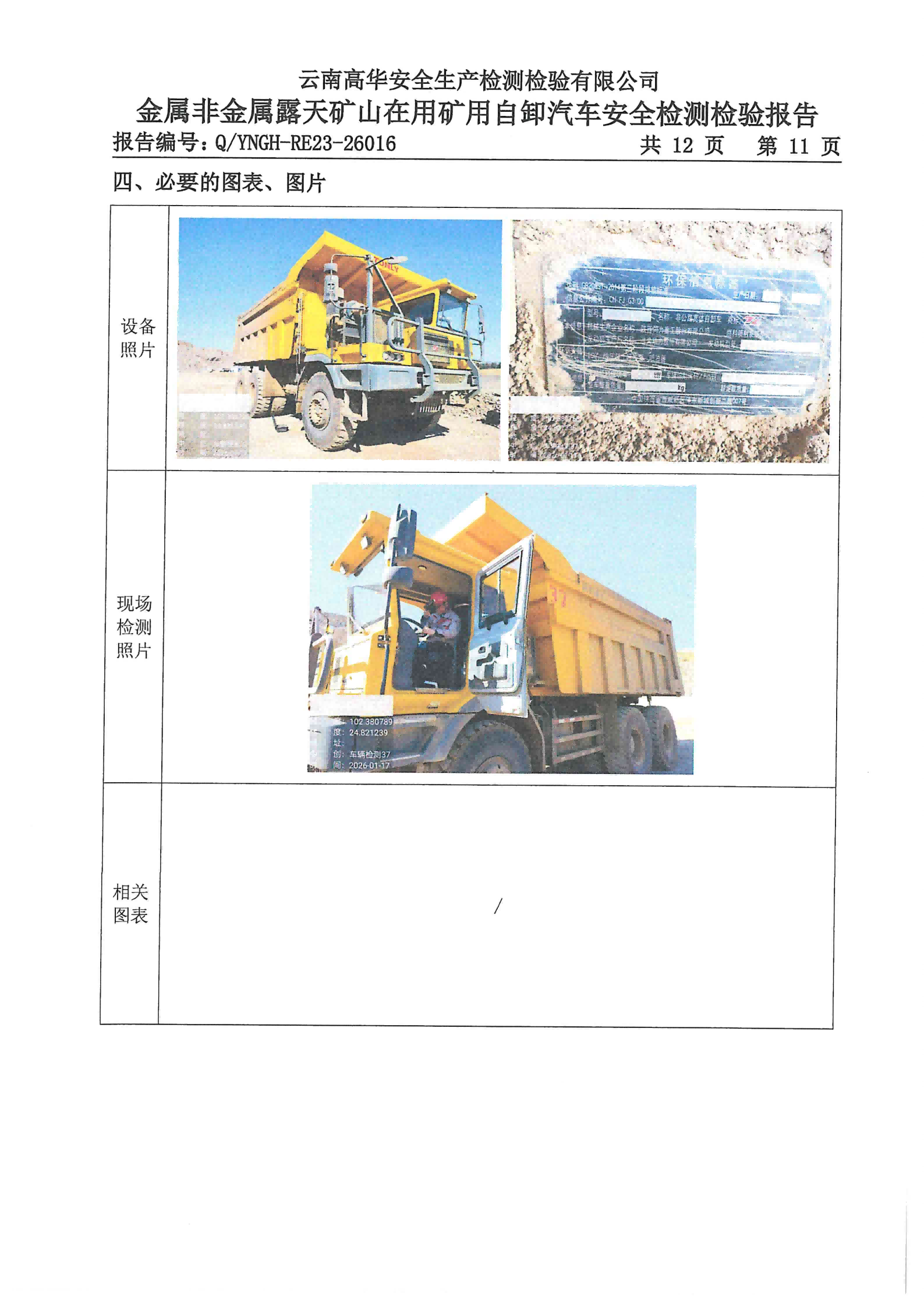 金属非金属露天矿山在用矿用自卸汽车安全检测检验报告