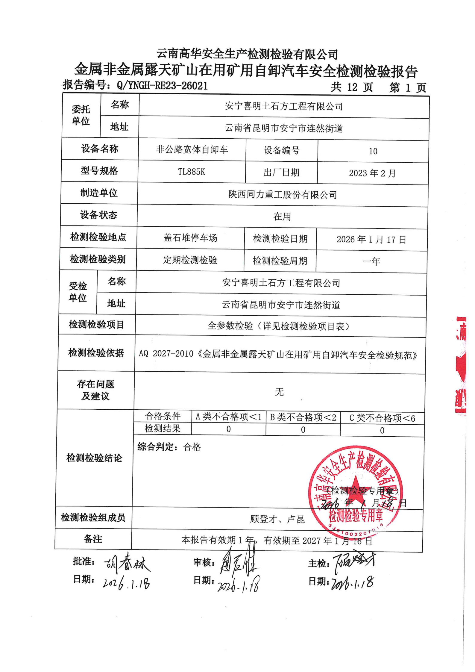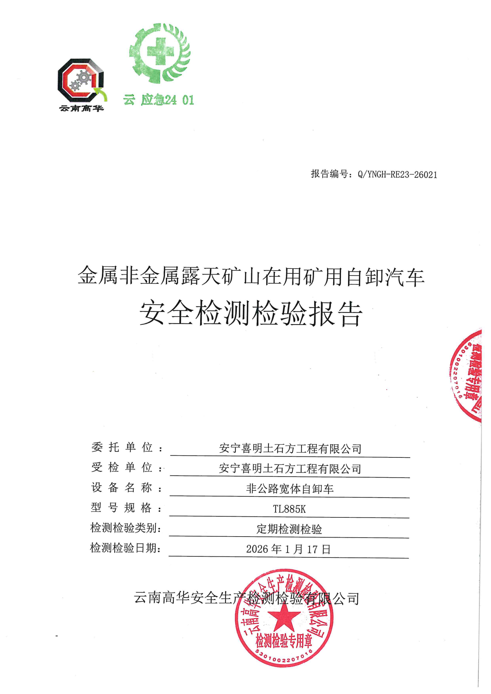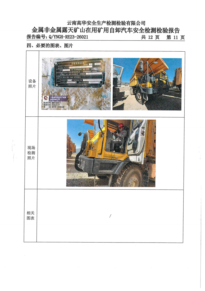 金属非金属露天矿山在用矿用自卸汽车安全检测检验报告