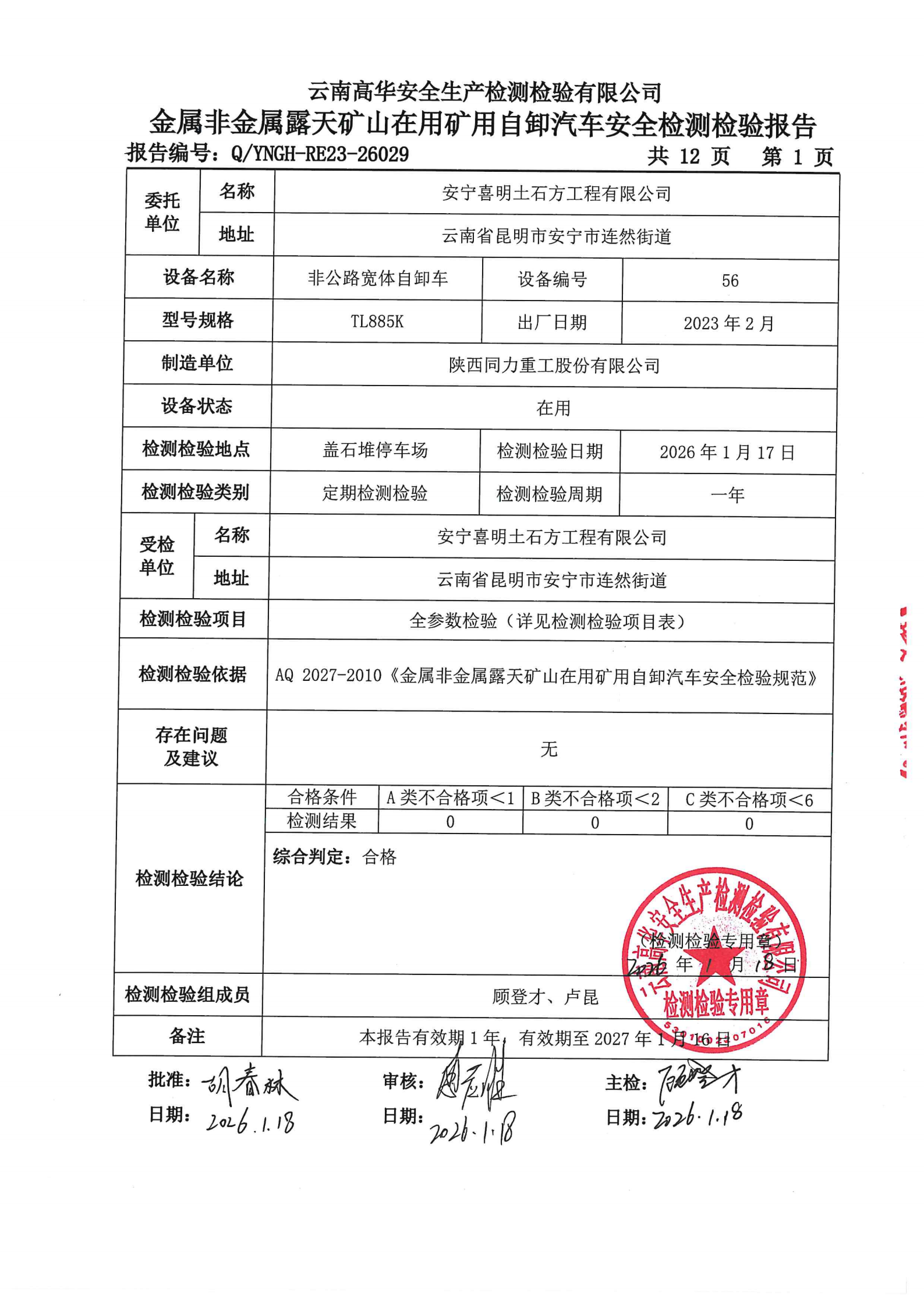 金属非金属露天矿山在用矿用自卸汽车安全检测检验报告