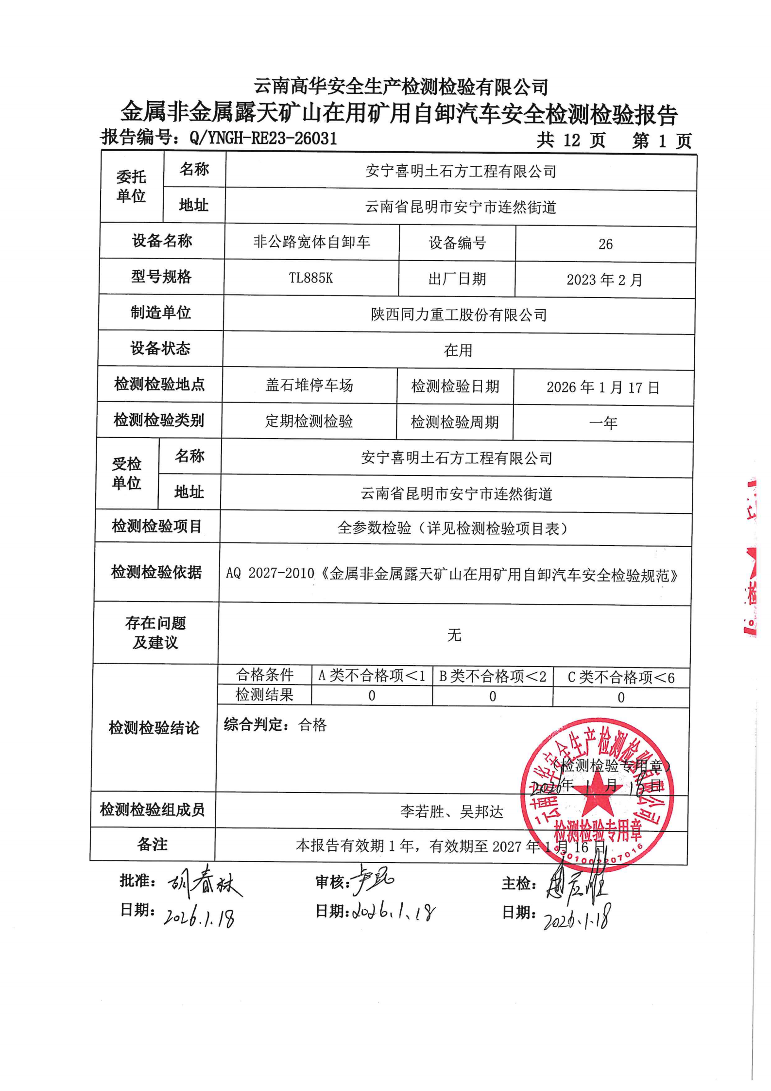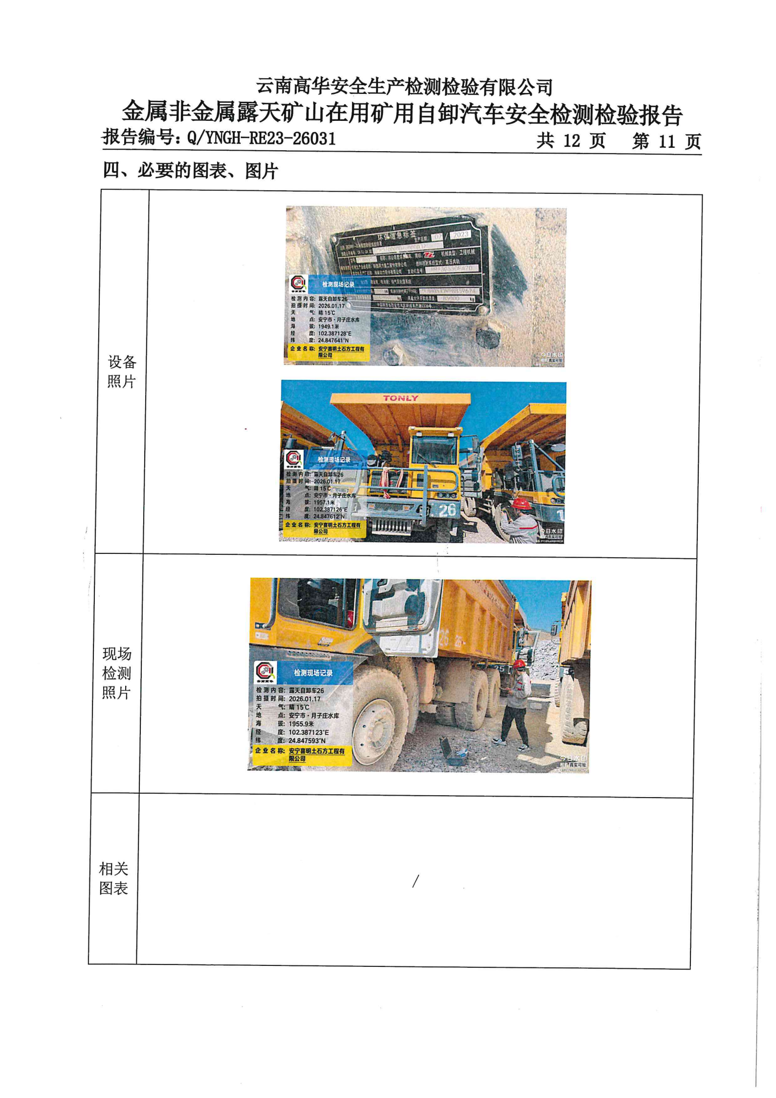 金属非金属露天矿山在用矿用自卸汽车安全检测检验报告