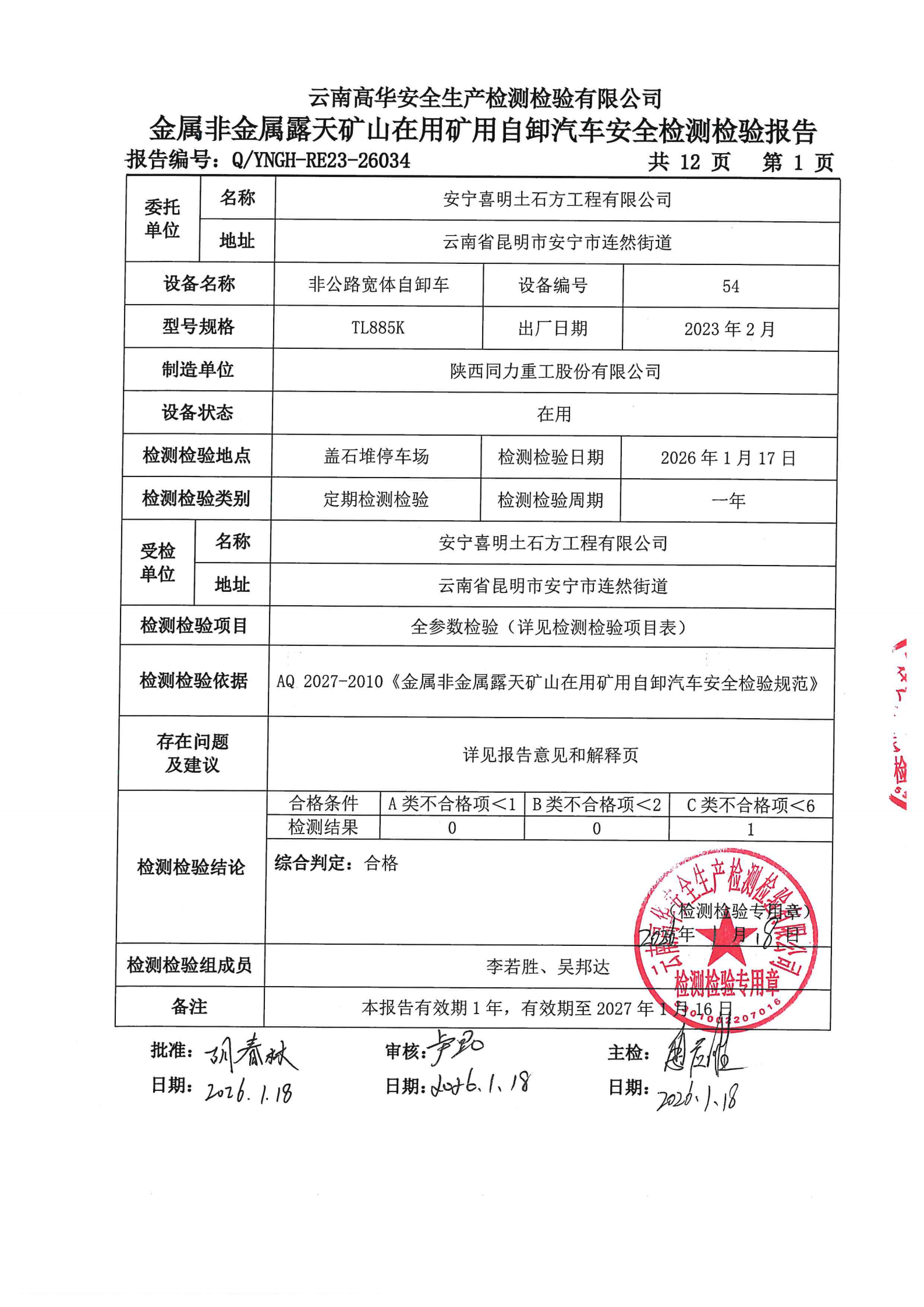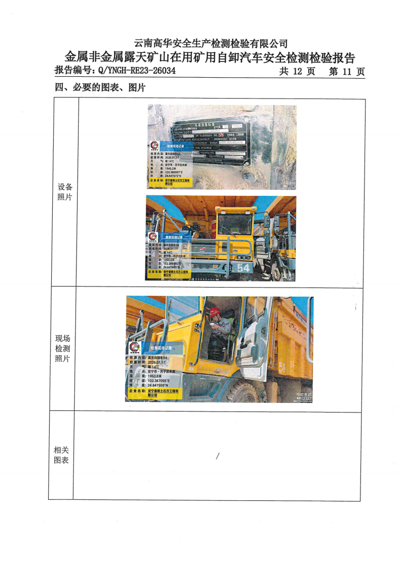 金属非金属露天矿山在用矿用自卸汽车安全检测检验报告
