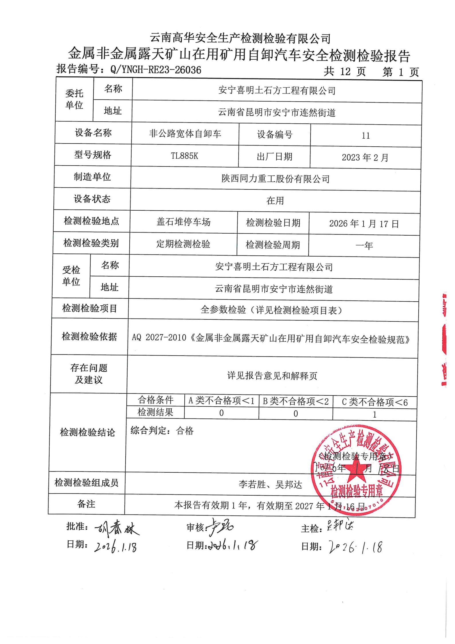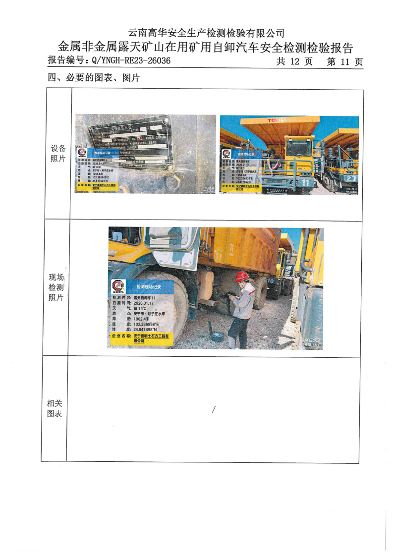 金属非金属露天矿山在用矿用自卸汽车安全检测检验报告