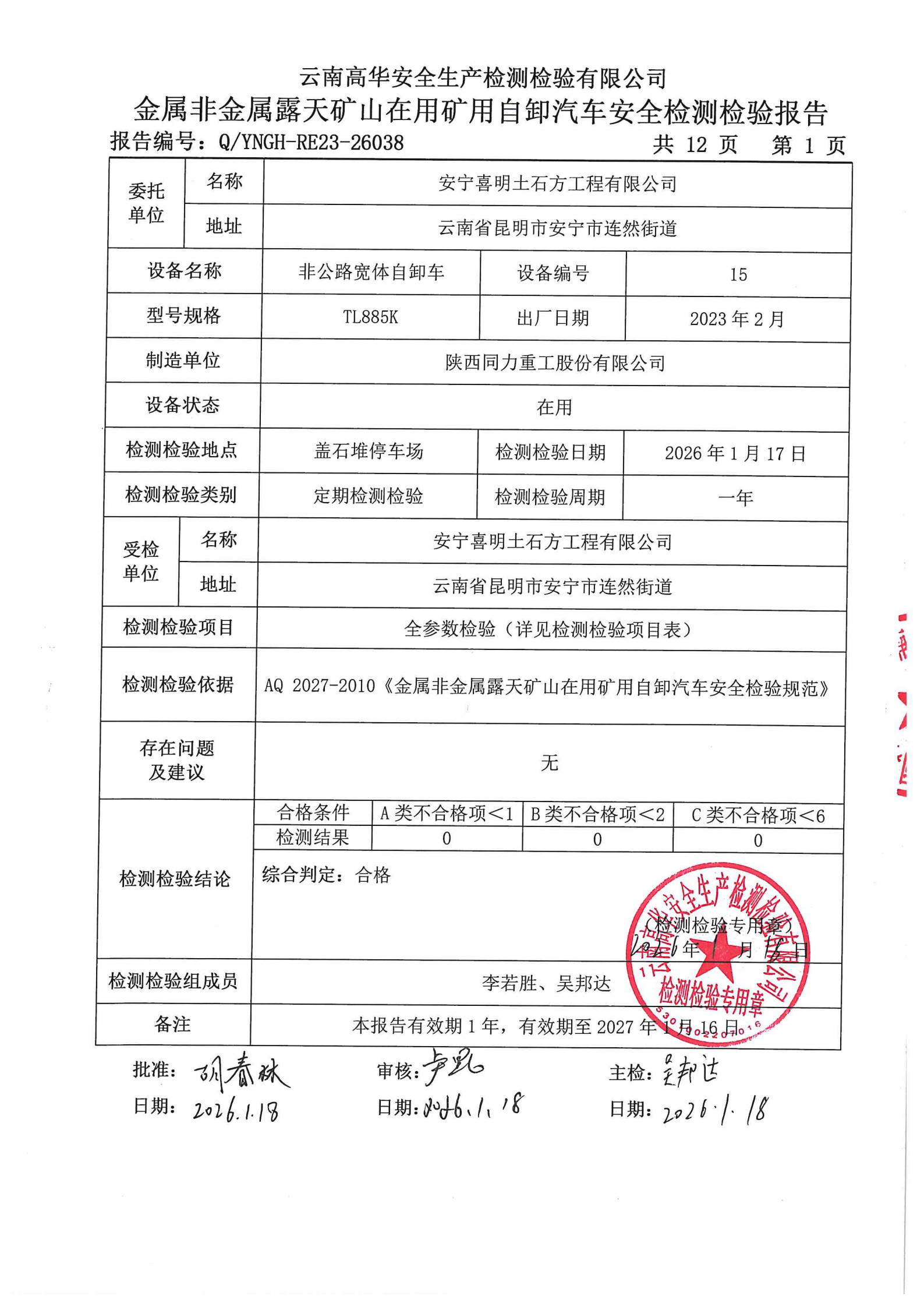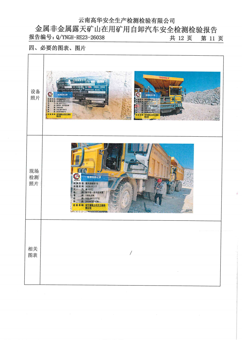 金属非金属露天矿山在用矿用自卸汽车安全检测检验报告