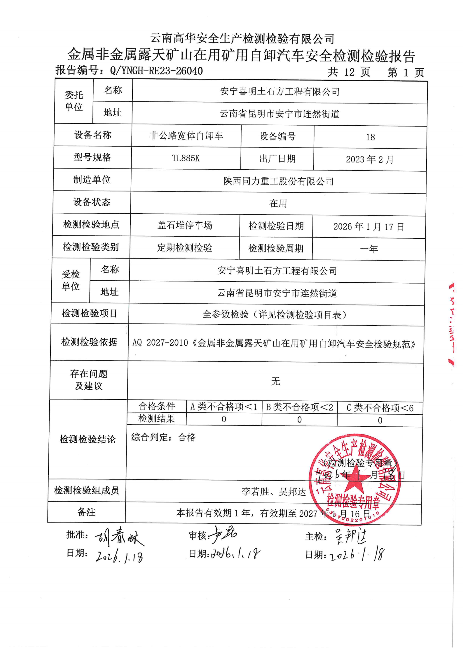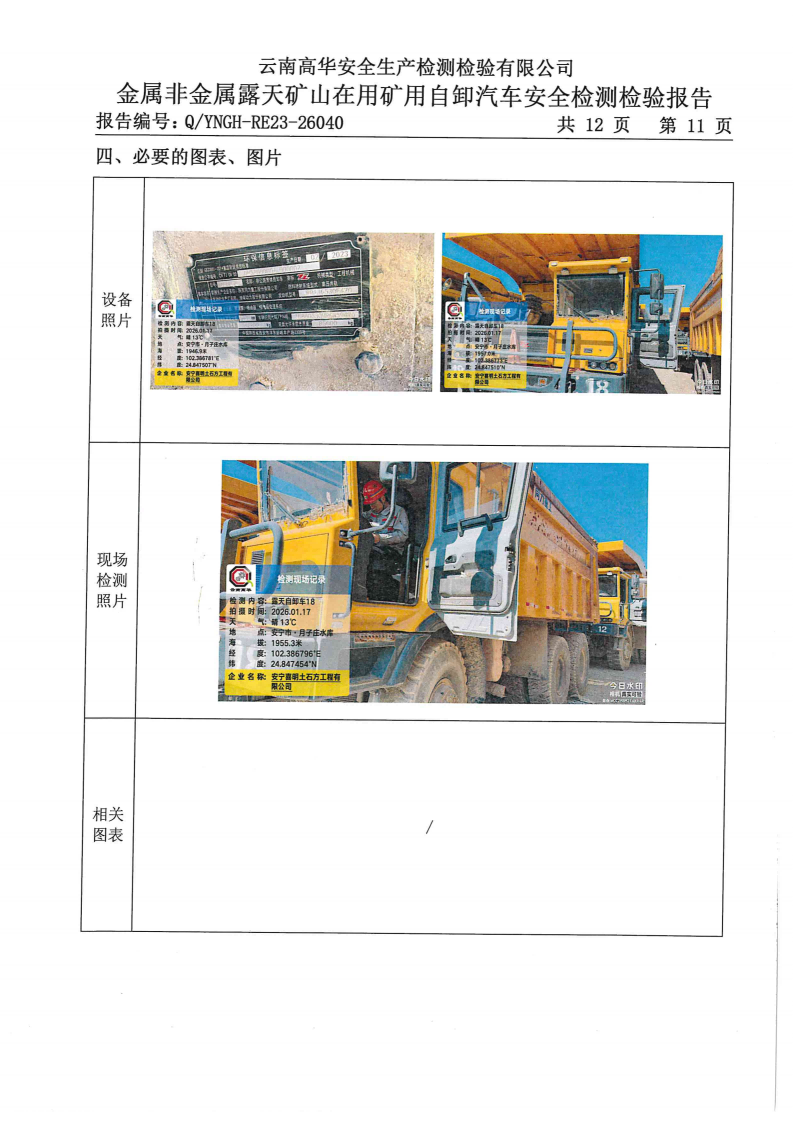 金属非金属露天矿山在用矿用自卸汽车安全检测检验报告