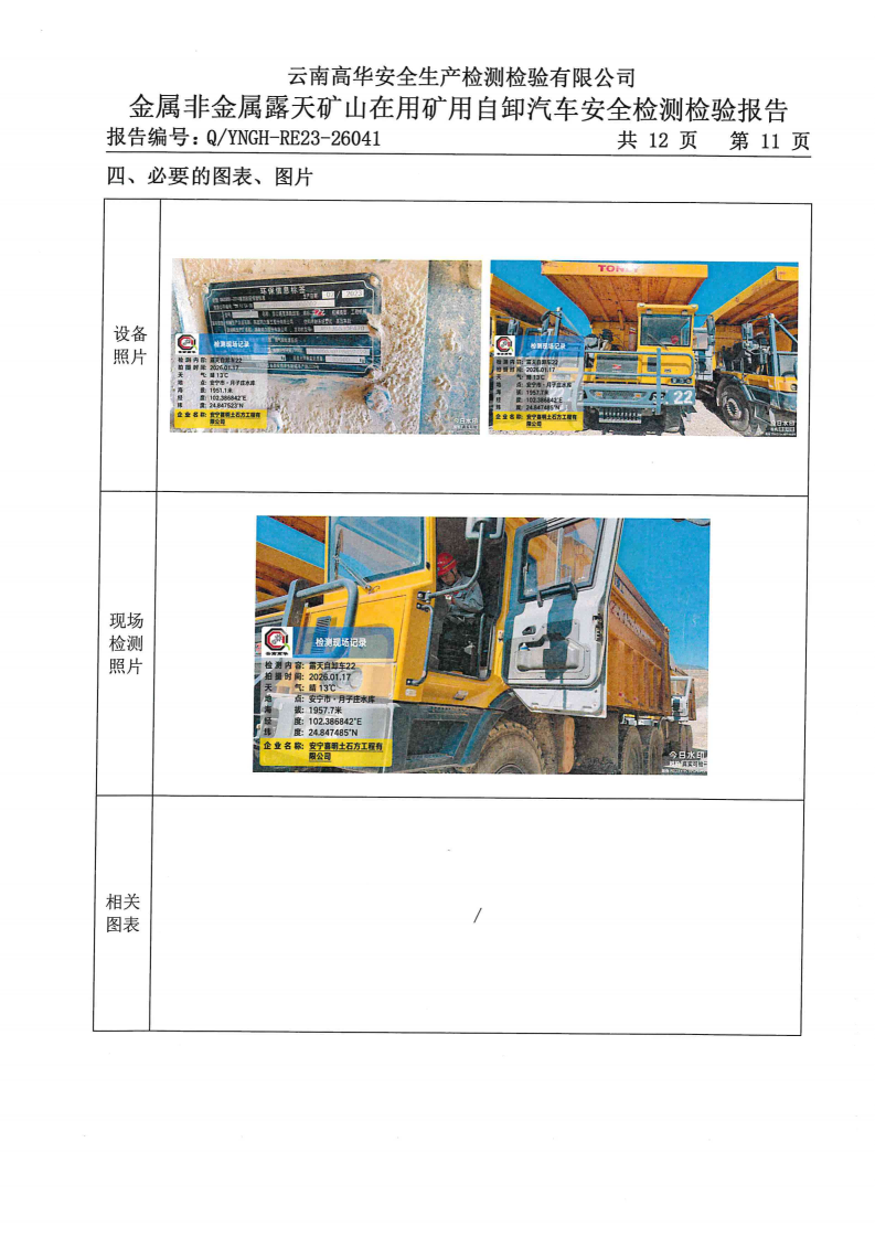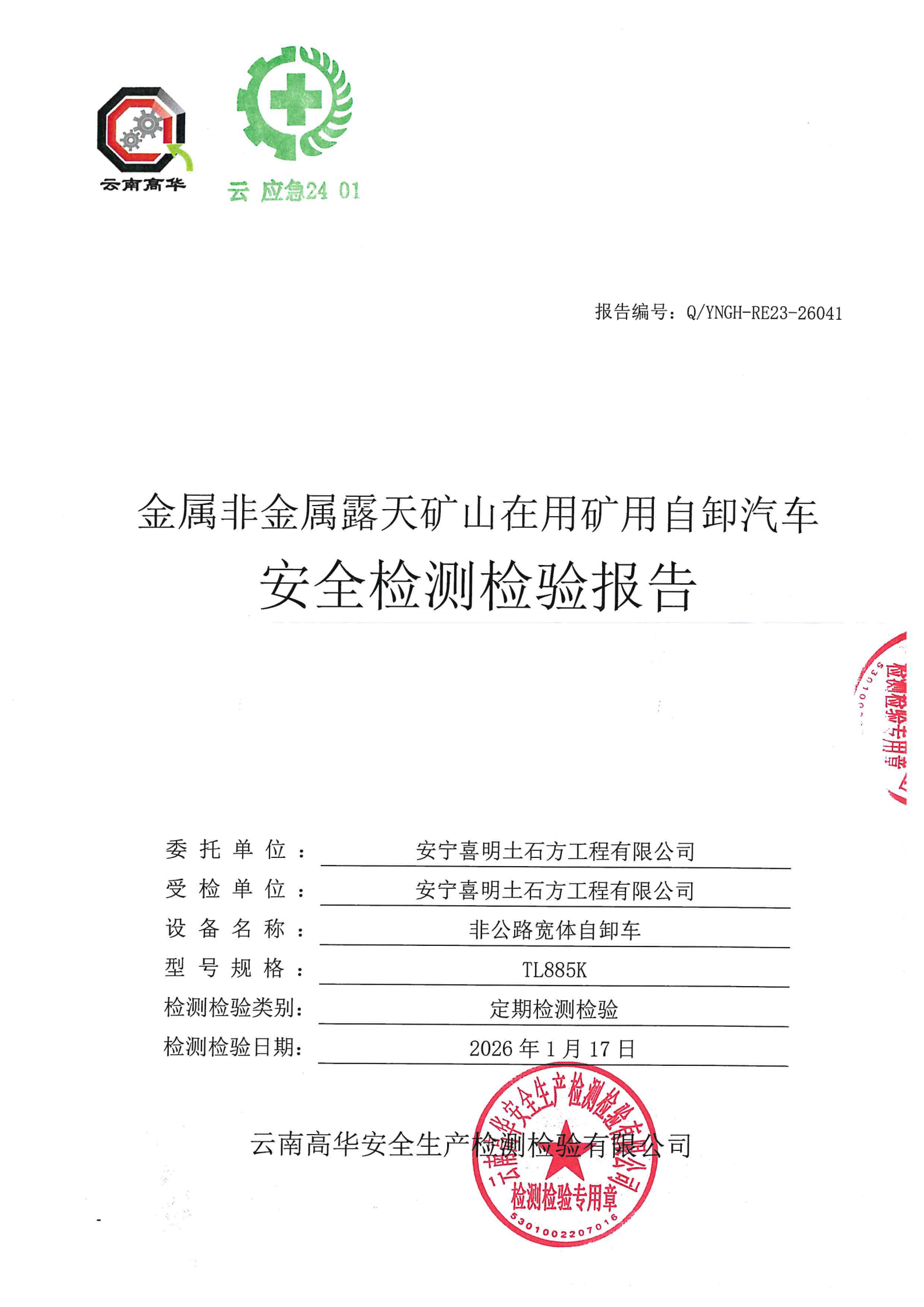 金属非金属露天矿山在用矿用自卸汽车安全检测检验报告