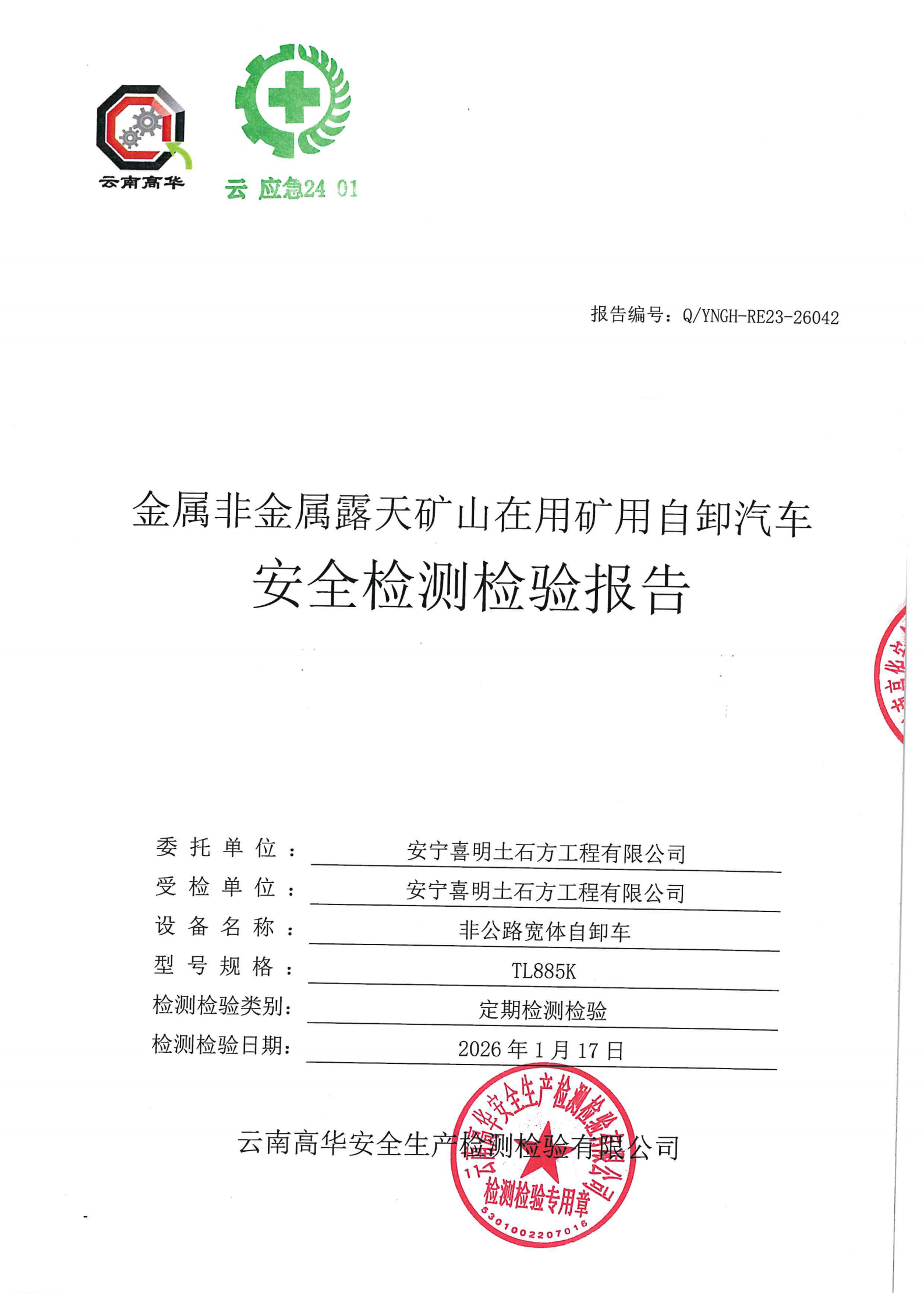 金属非金属矿山在用矿用自卸汽车安全检测检验报告