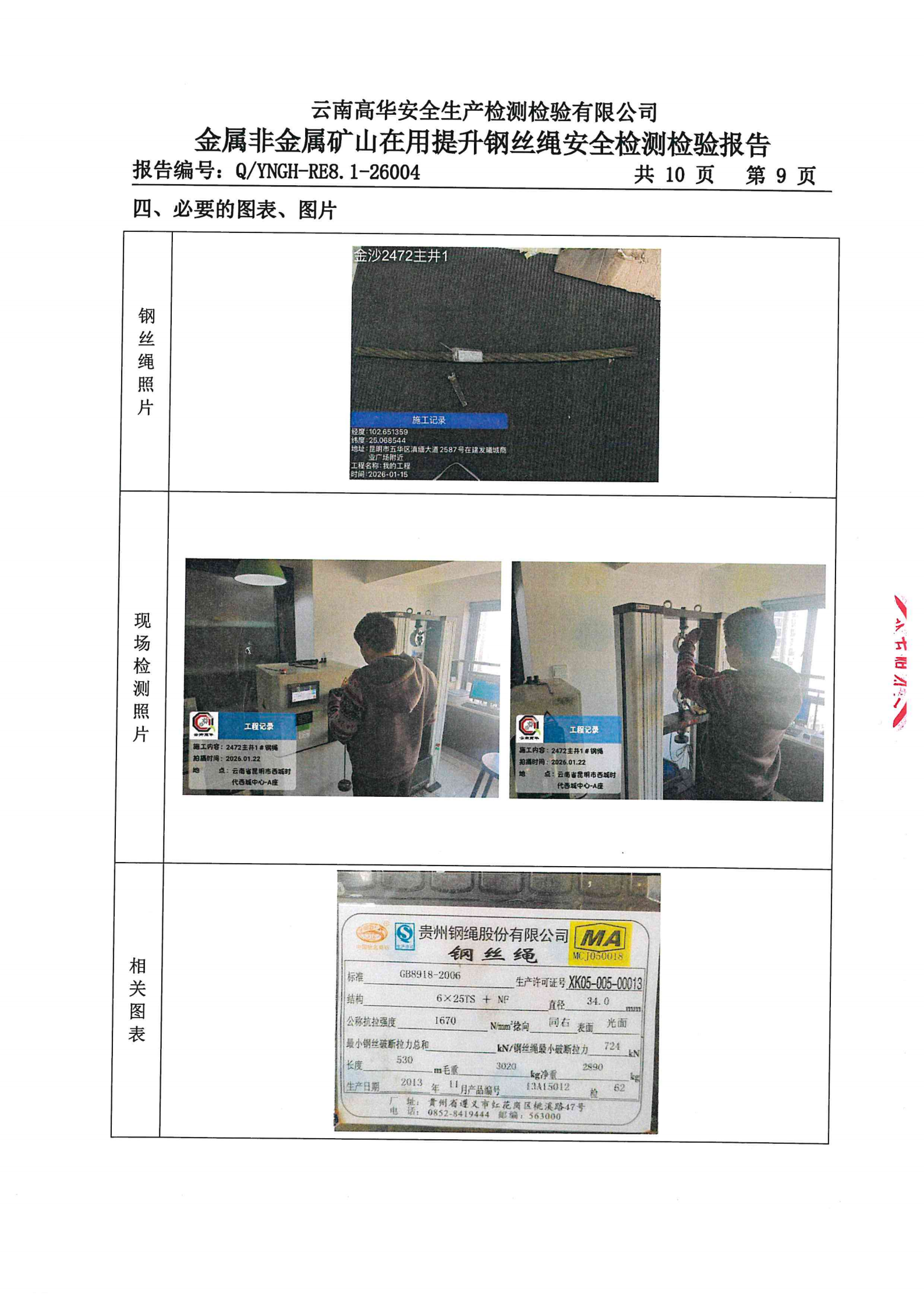 金属非金属矿山在用提升钢丝绳安全检测检验报告
