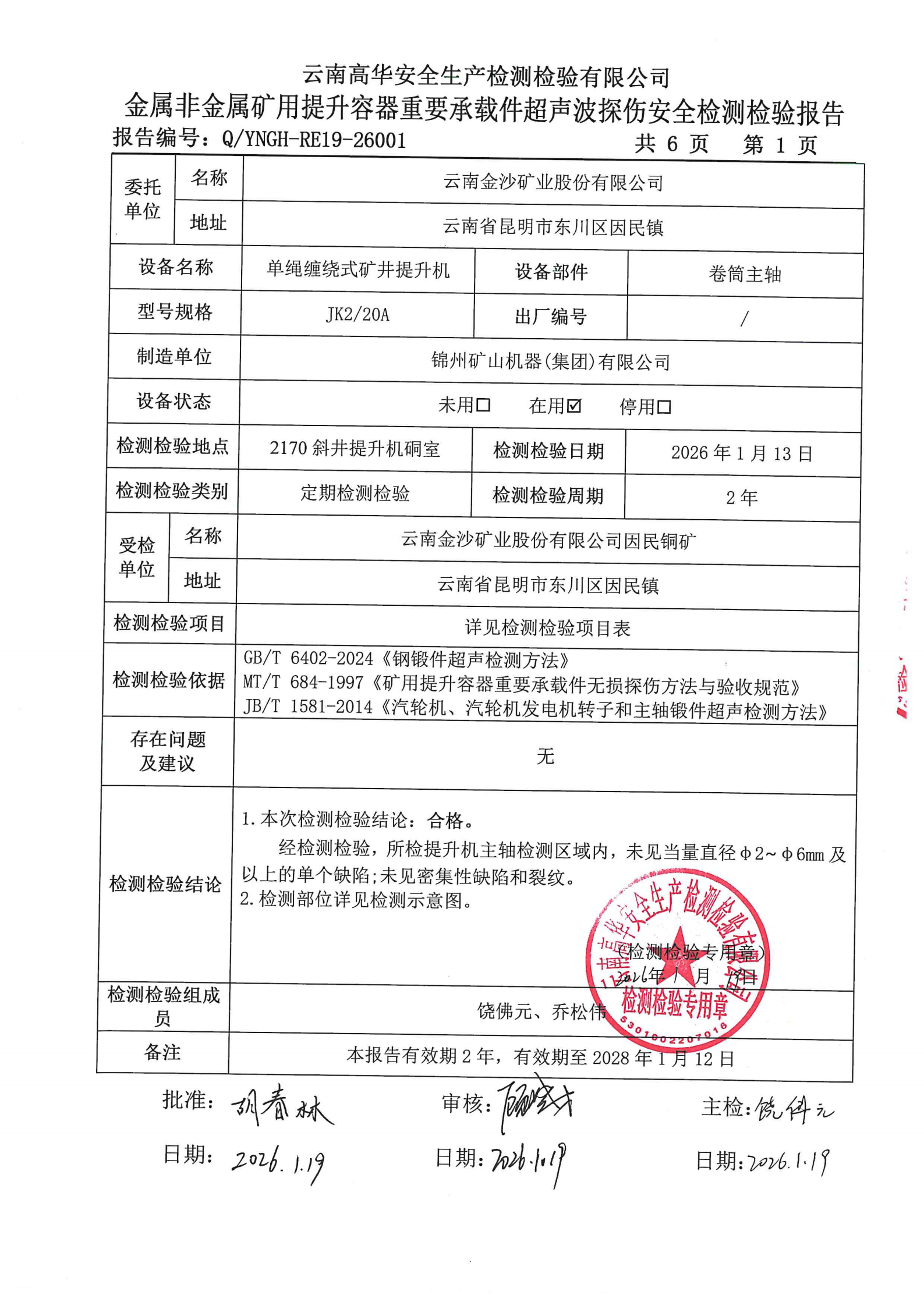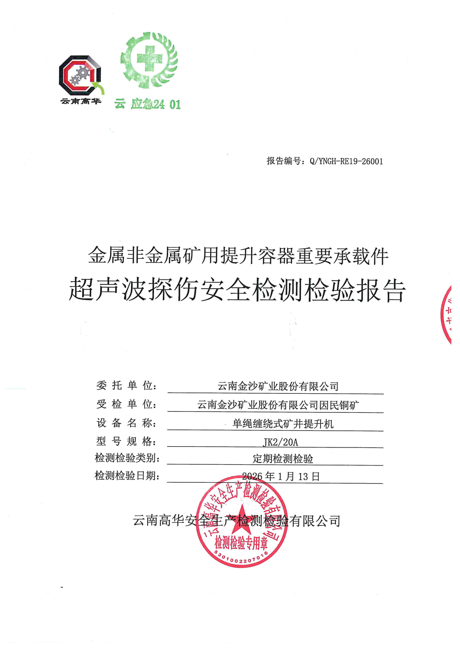 金属非金属矿用提升容器重要承载件超声波探伤安全检测检验报告