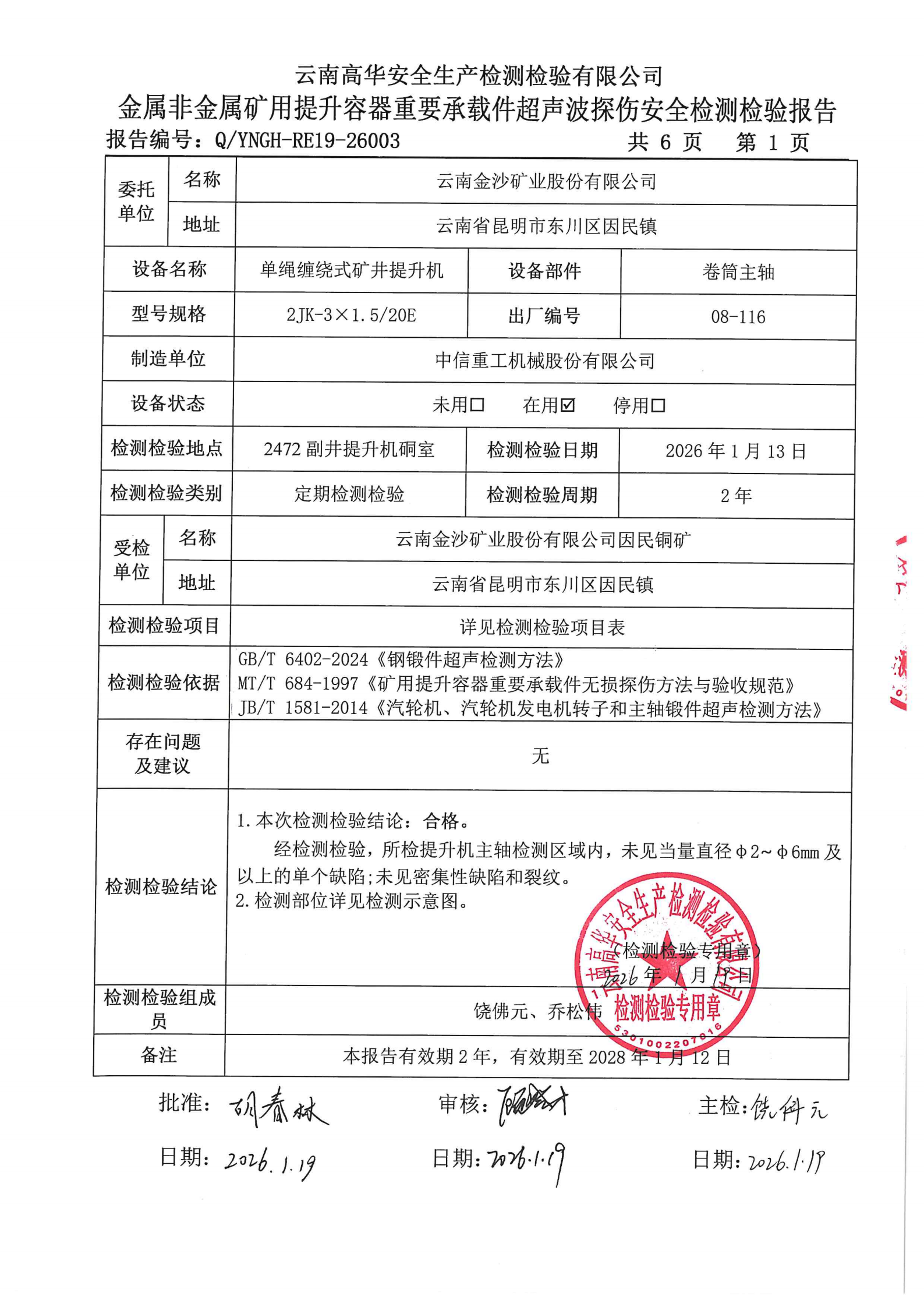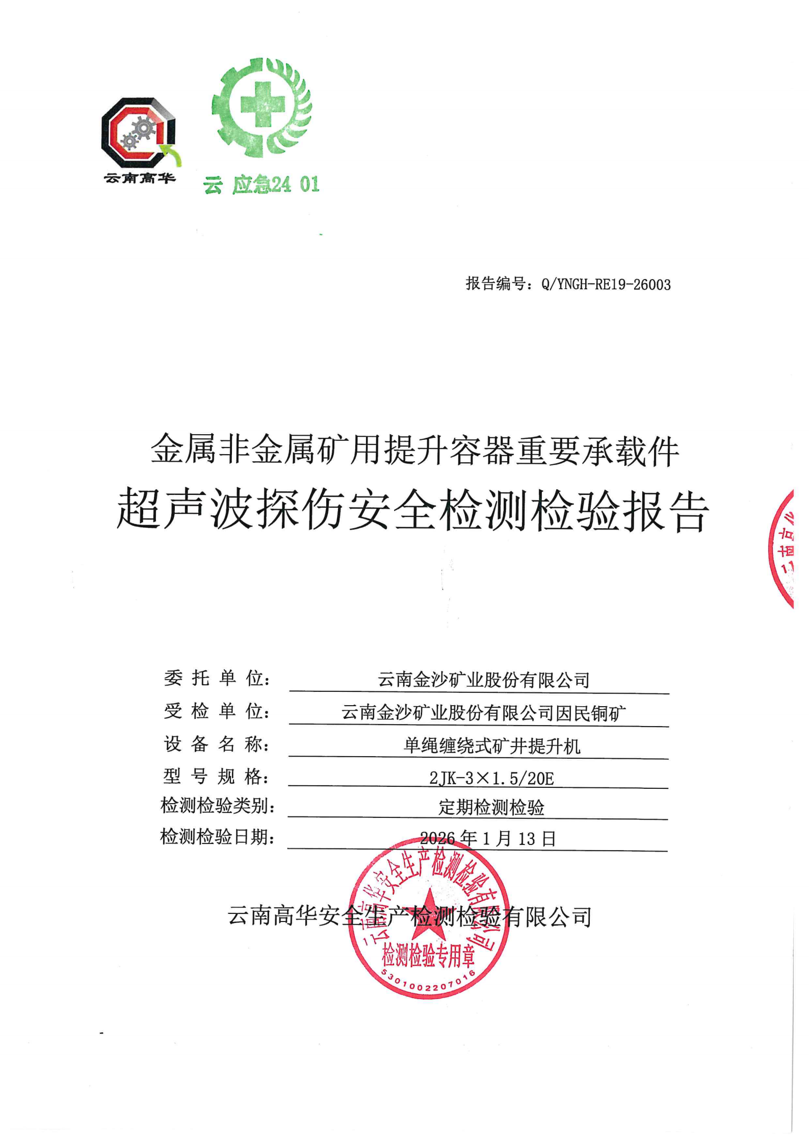 金属非金属矿用提升容器重要承载件超声波探伤安全检测检验报告