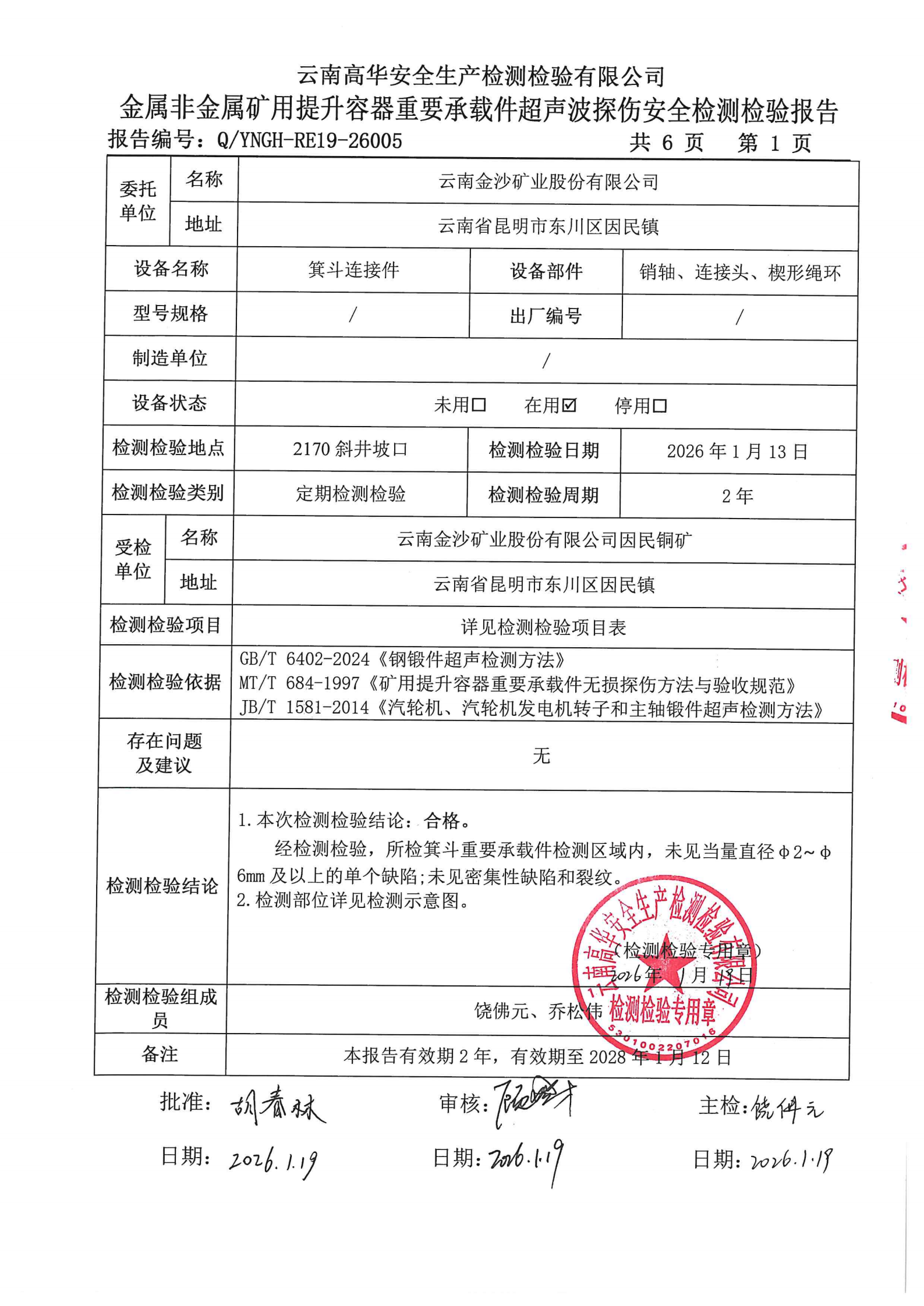 金属非金属矿用提升容器重要承载件超声波探伤安全检测检验报告