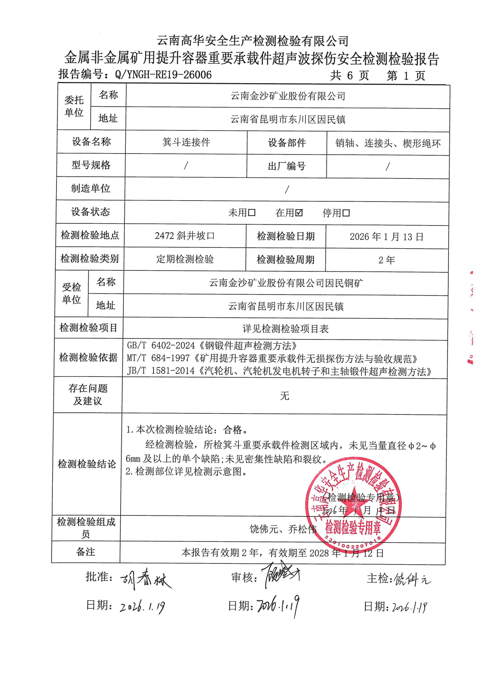 金属非金属矿用提升容器重要承载件超声波探伤安全检测检验报告
