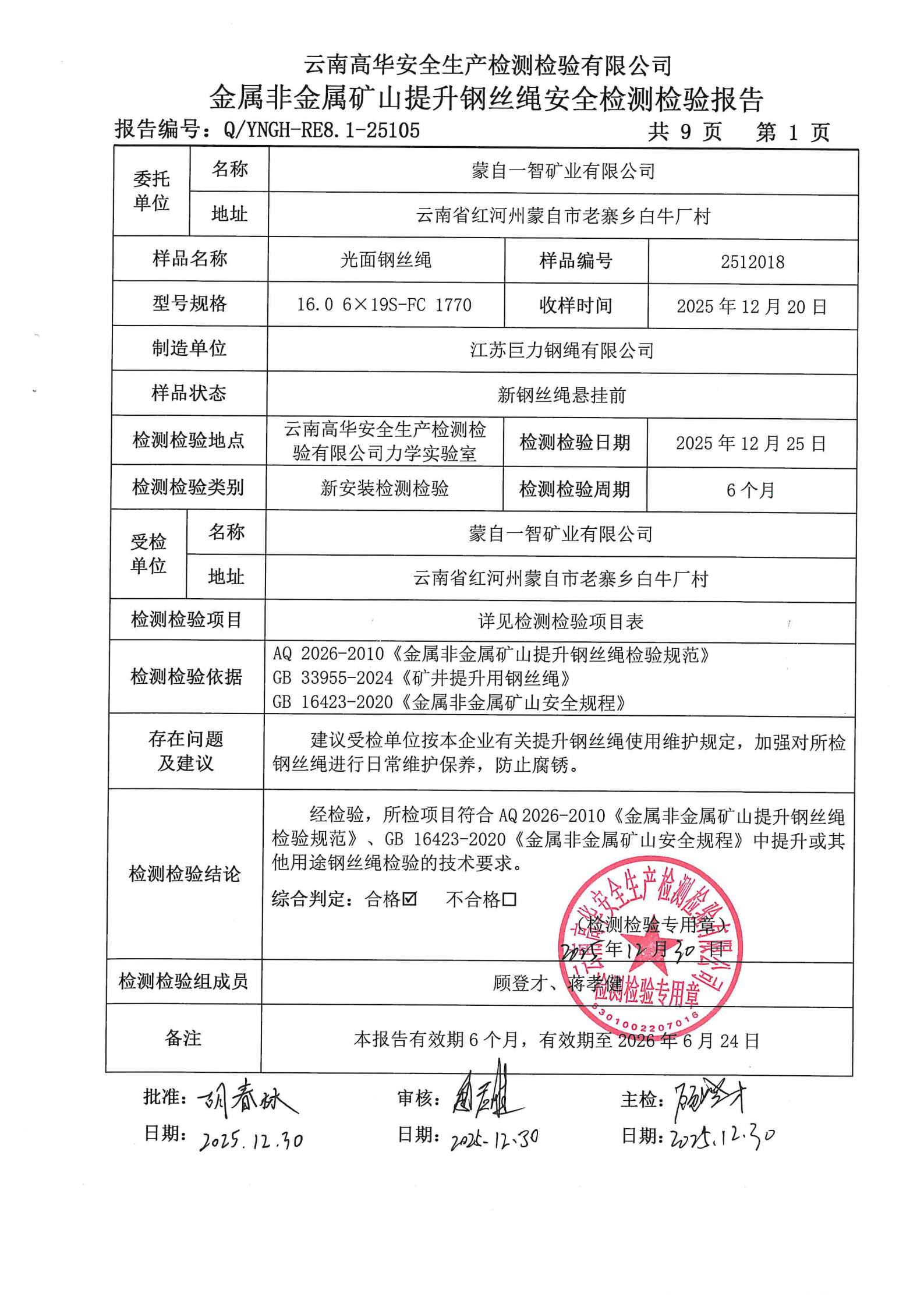 金属非金属矿山提升钢丝绳安全检测检验报告