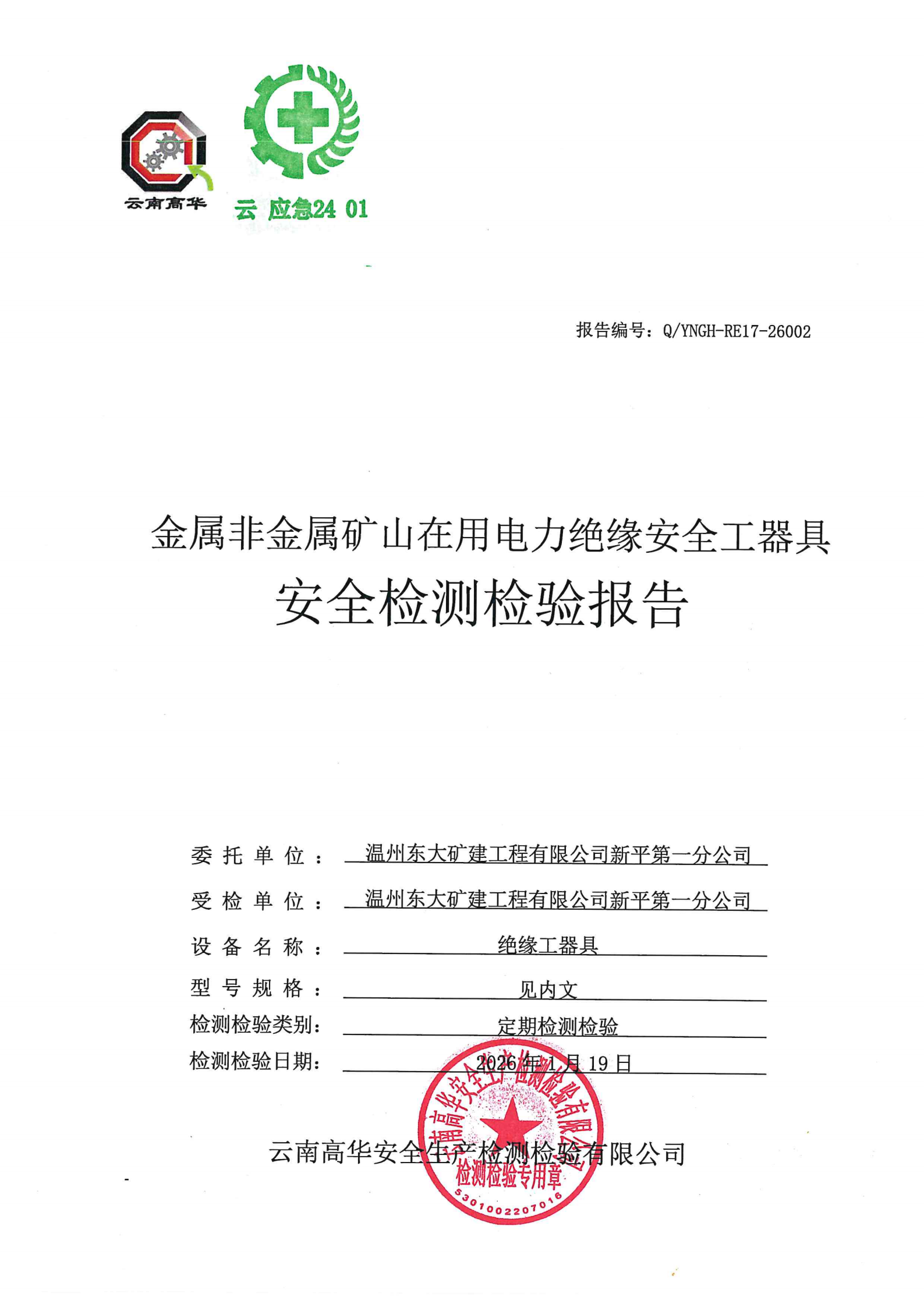 金属非金属矿山在用电力绝缘安全工器具安全检测检验报告