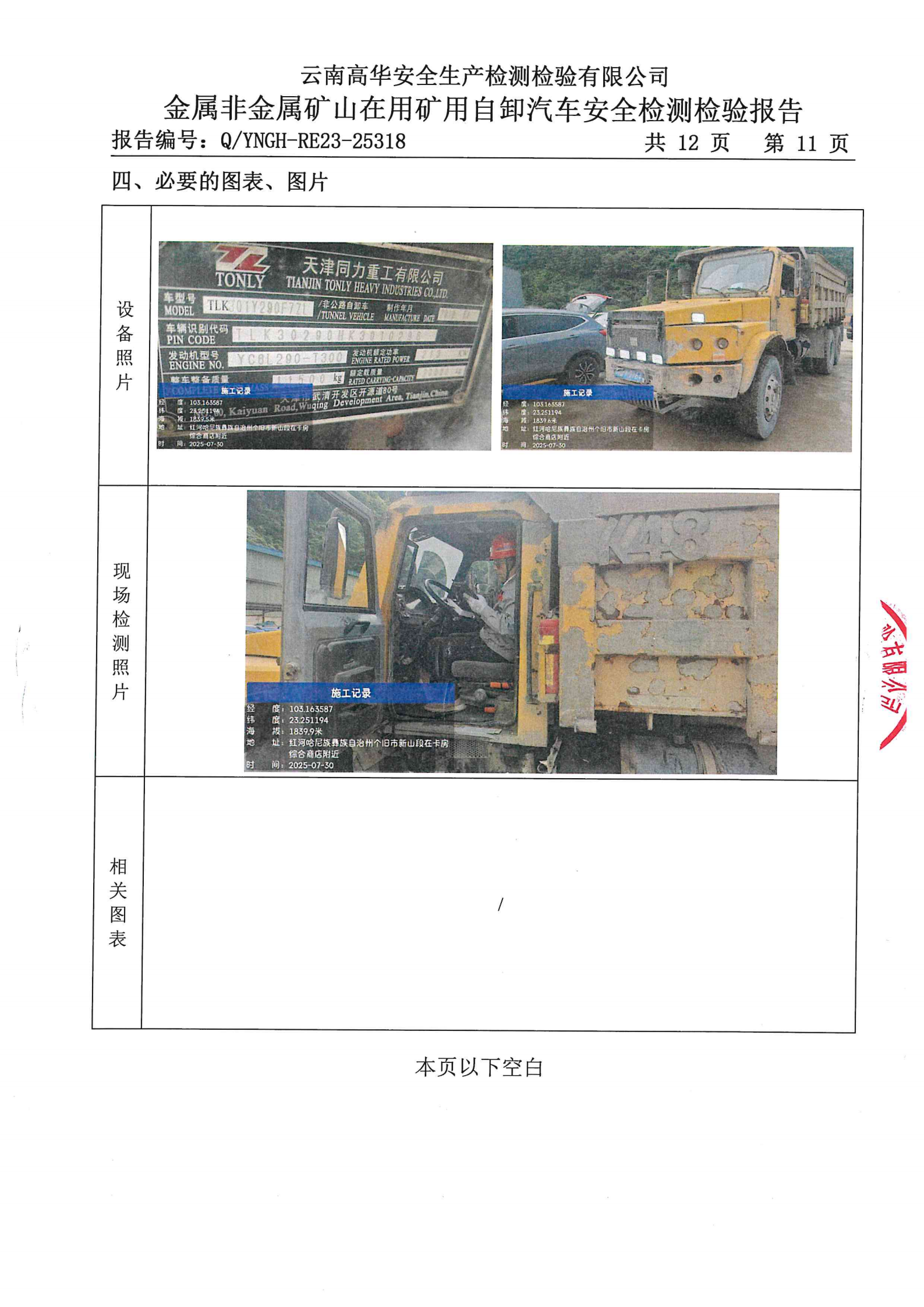 金属非金属矿山在用矿用自卸汽车安全检测检验报告