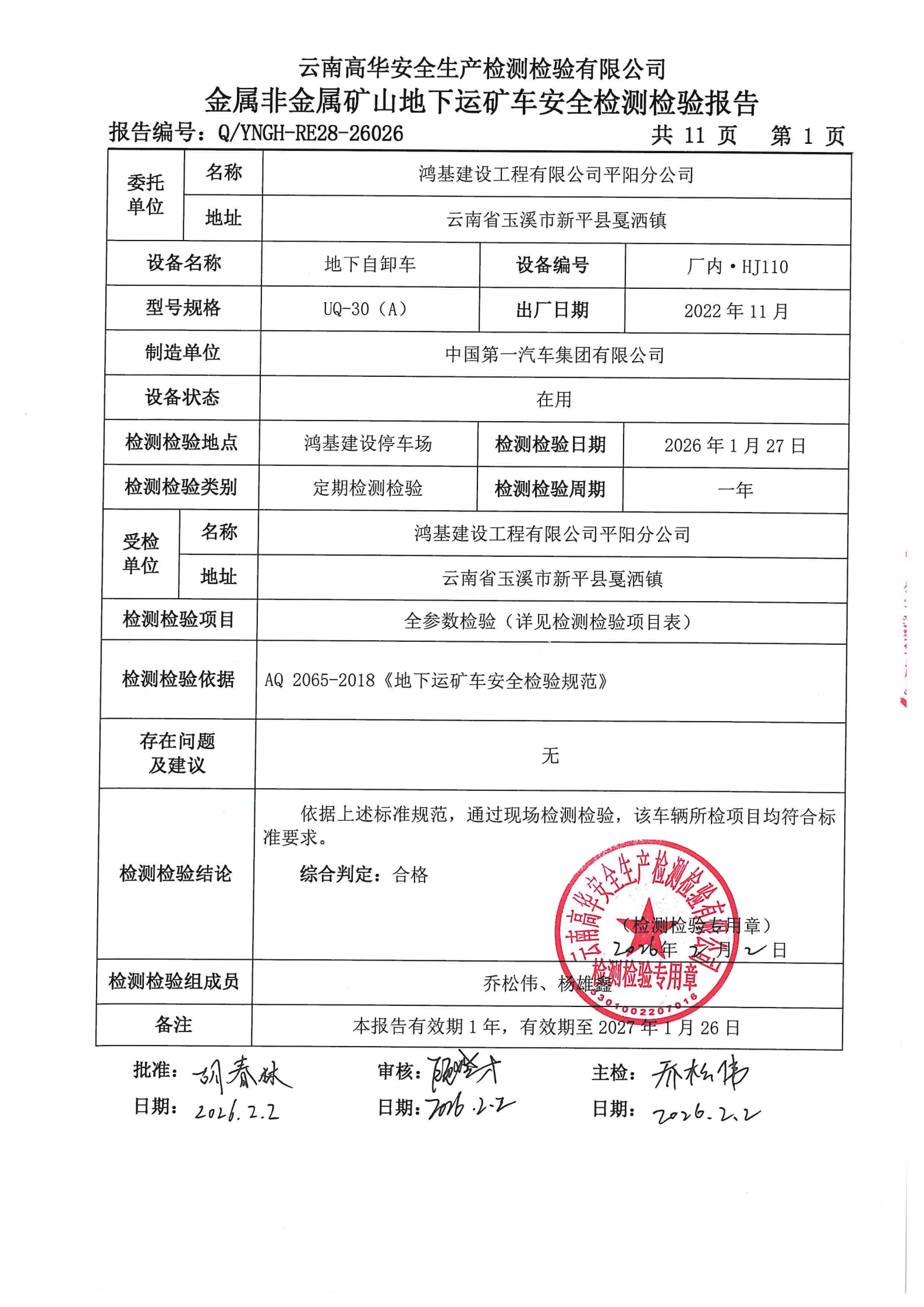 金属非金属矿用提升容器重要承载件超声波探伤安全检测检验报告