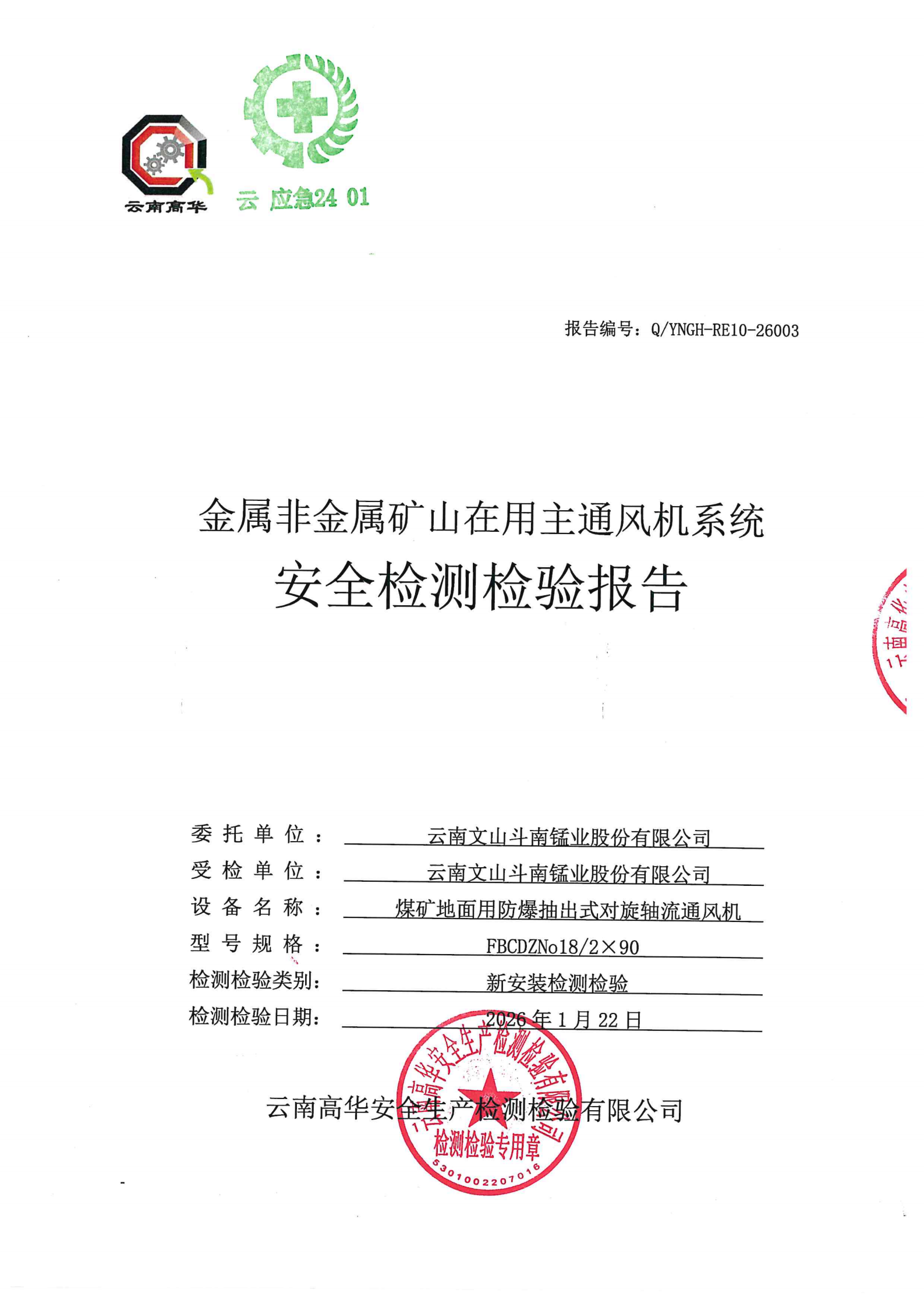 金属非金属矿山在用主通风机系统安全检测检验报告