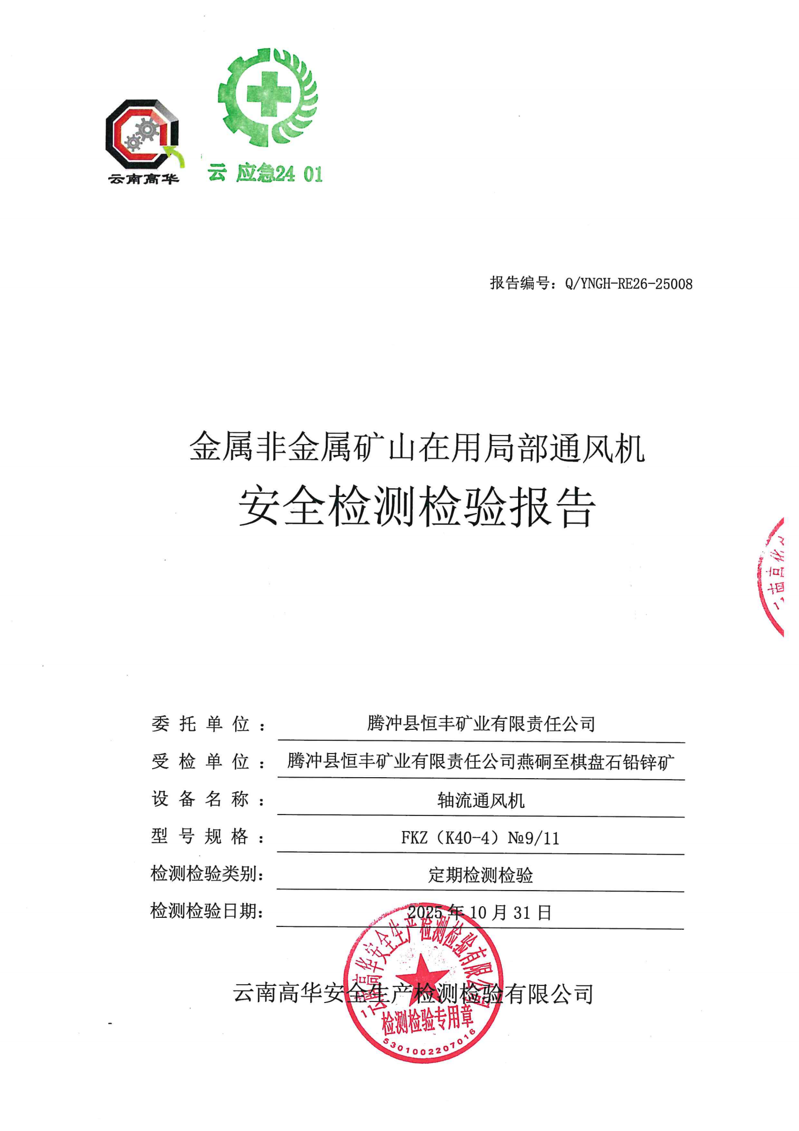 金属非金属矿山在用局部通风机安全检测检验报告