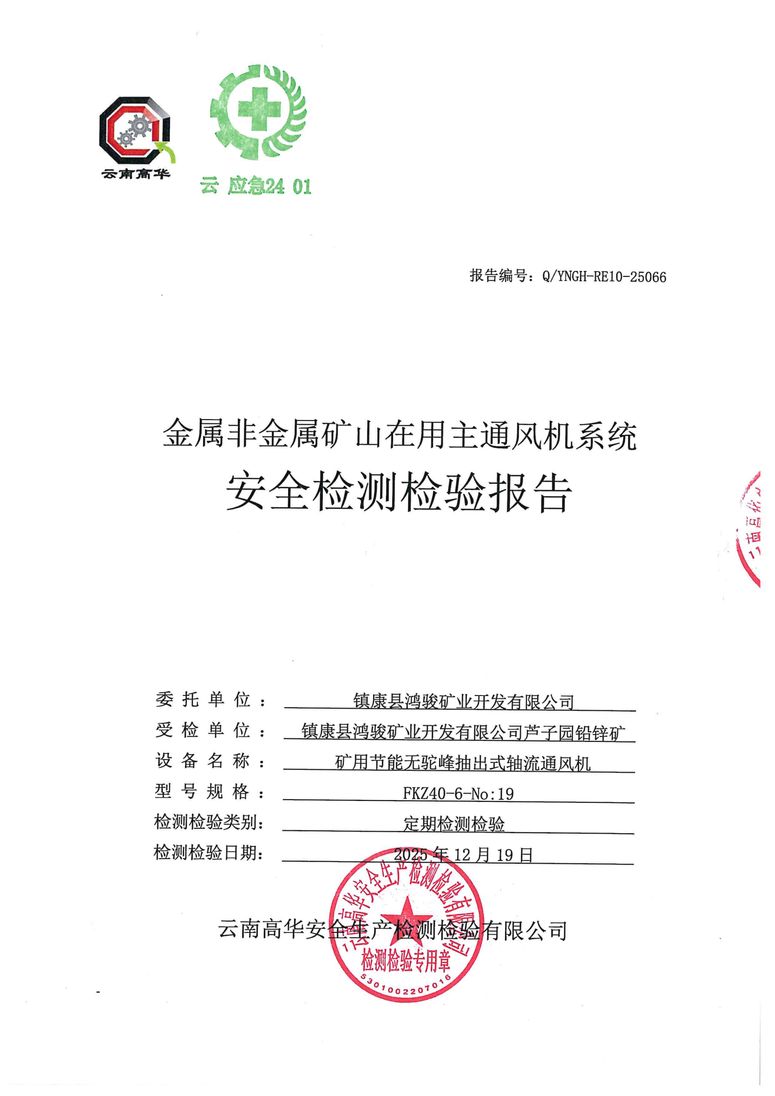 金属非金属矿山在用主通风机系统安全检测检验报告