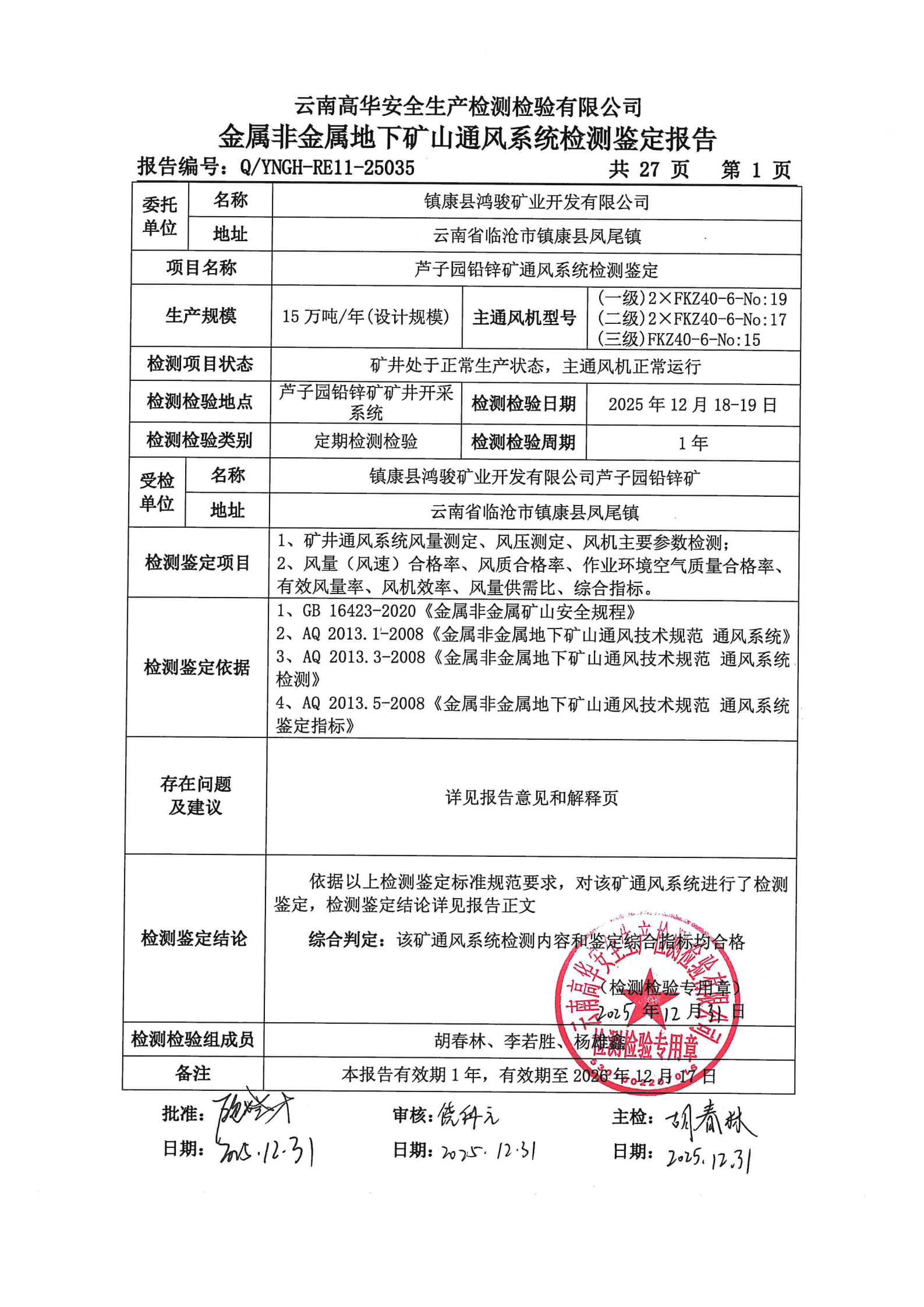 金属非金属地下矿山通风系统检测鉴定报告