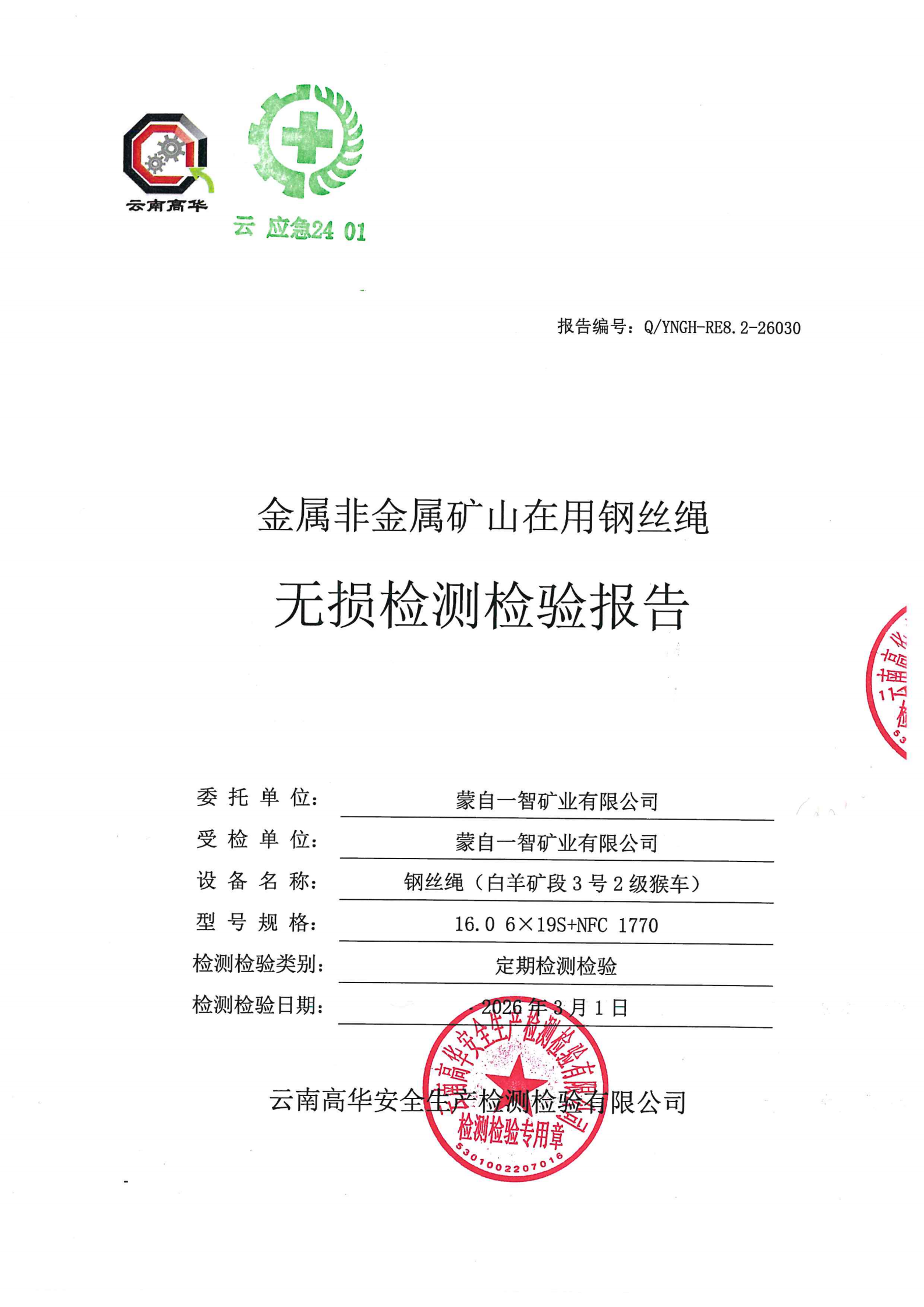 金属非金属矿山在用提升钢丝绳安全检测检验报告