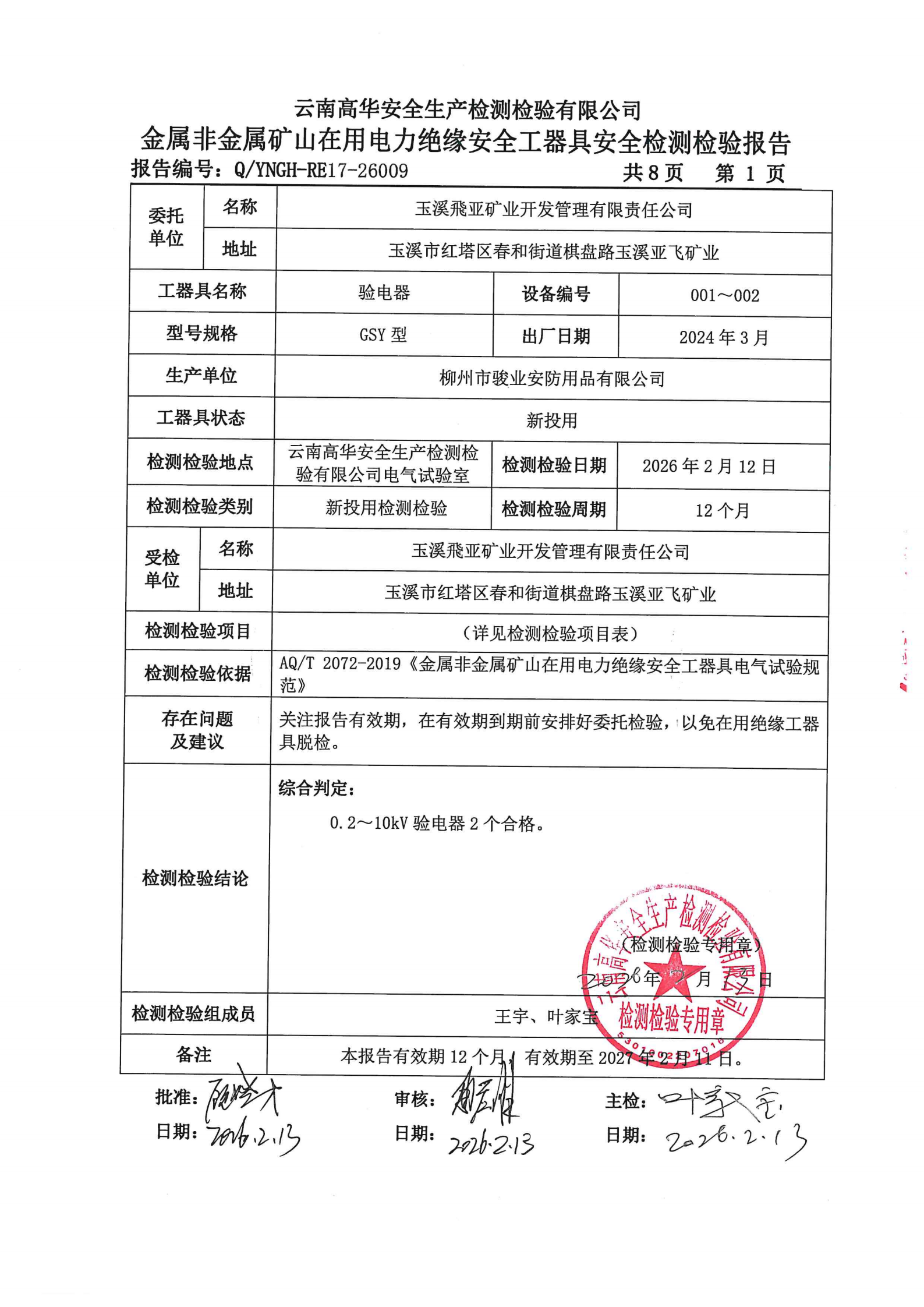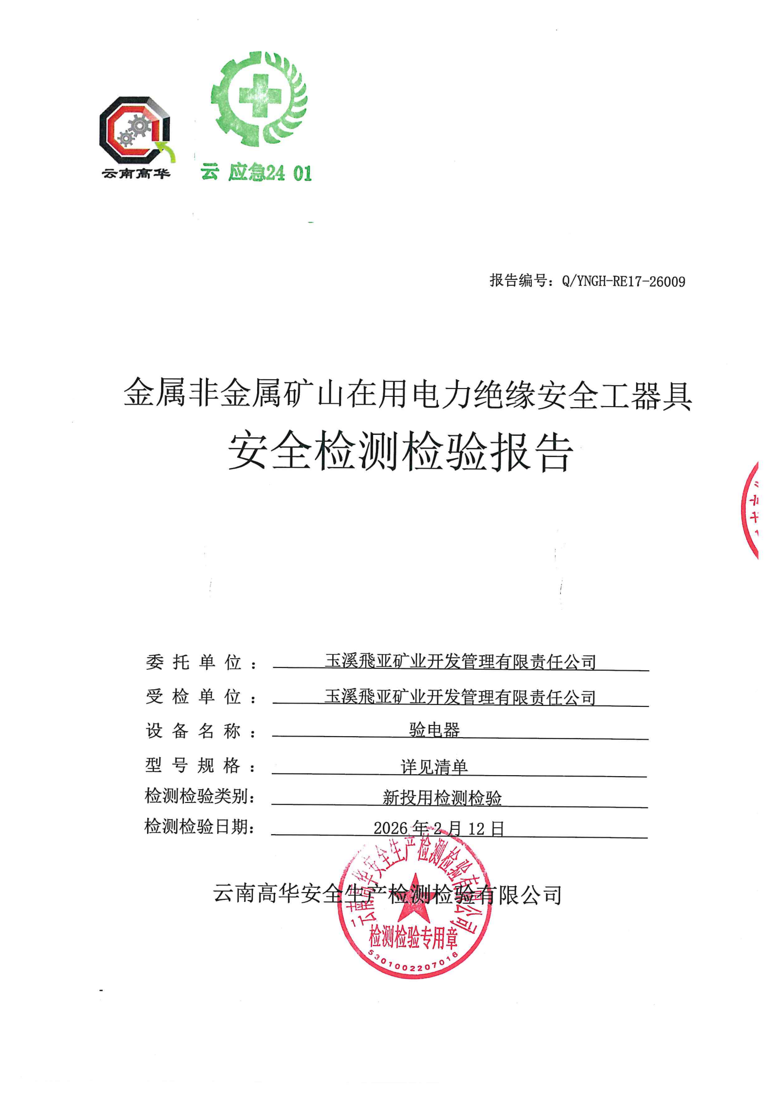 金属非金属矿山电力绝缘安全工器具安全检测检验报告