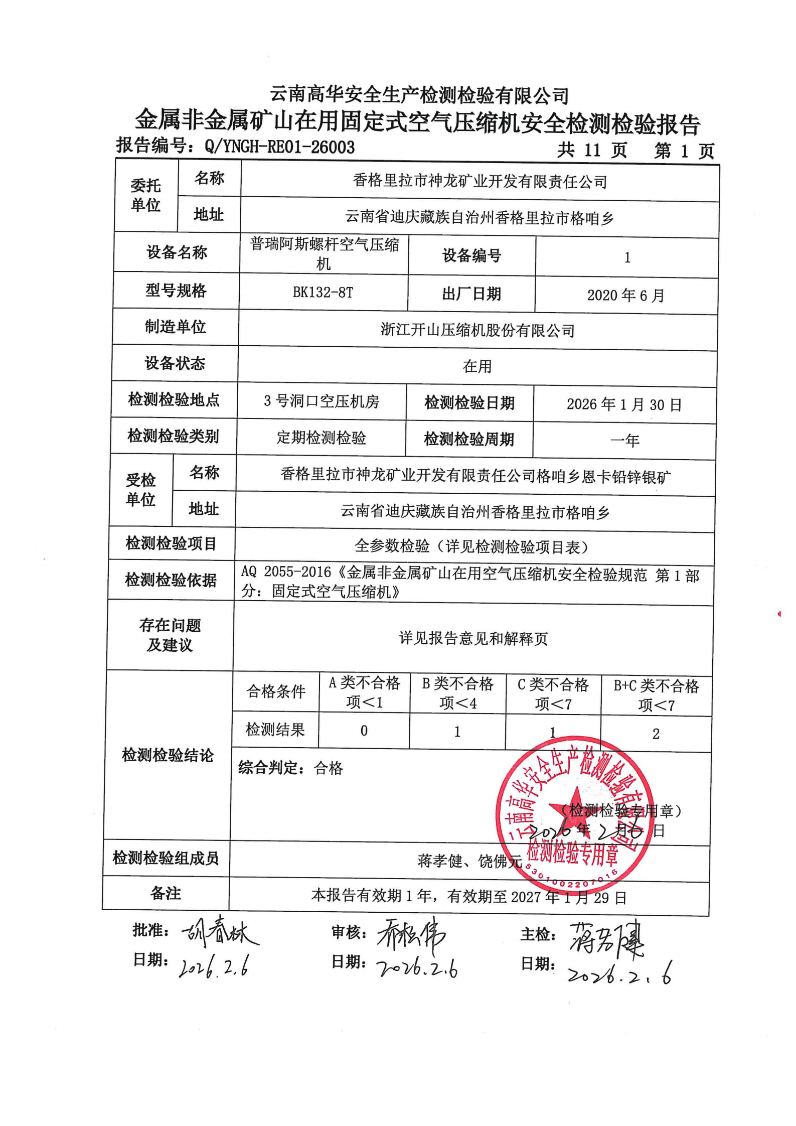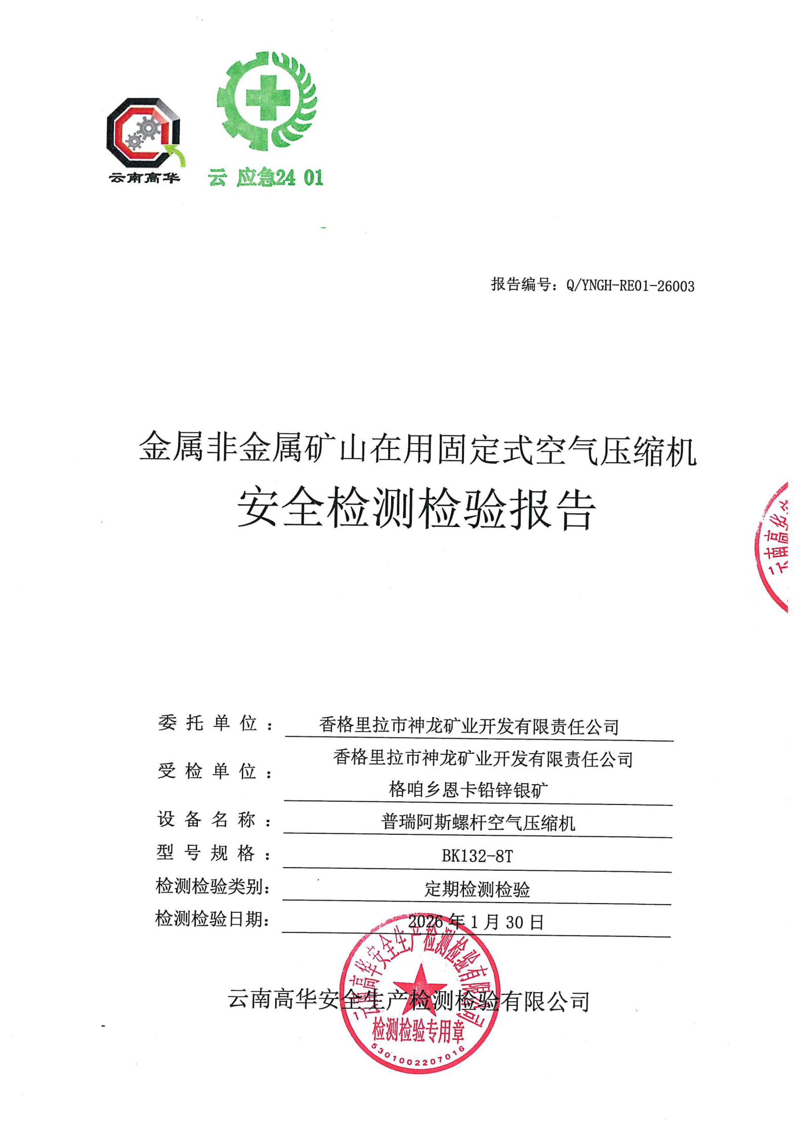 金属非金属矿山在用固定式空气压缩机安全检测检验报告