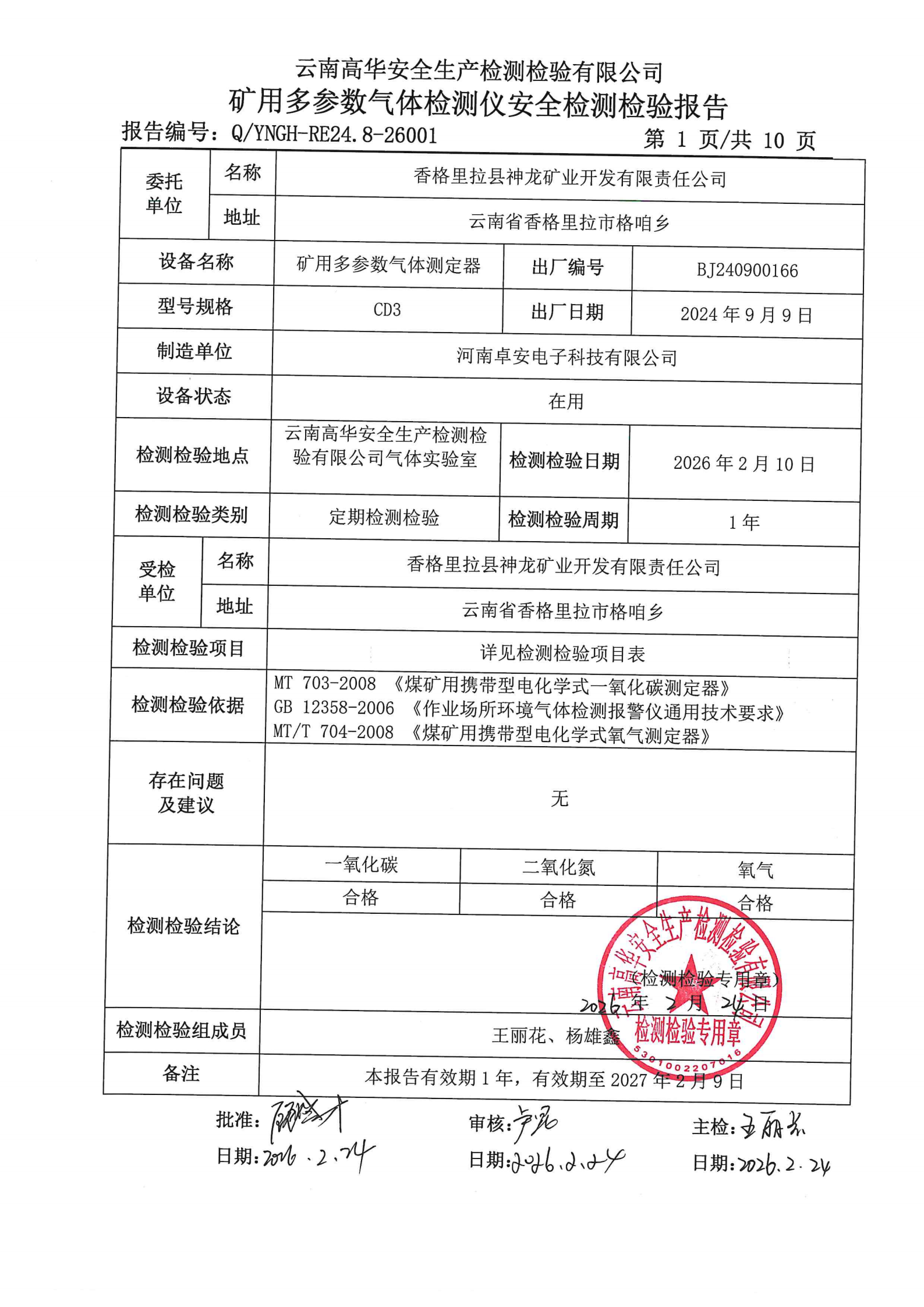 矿用多参数气体检测仪安全检测检验报告