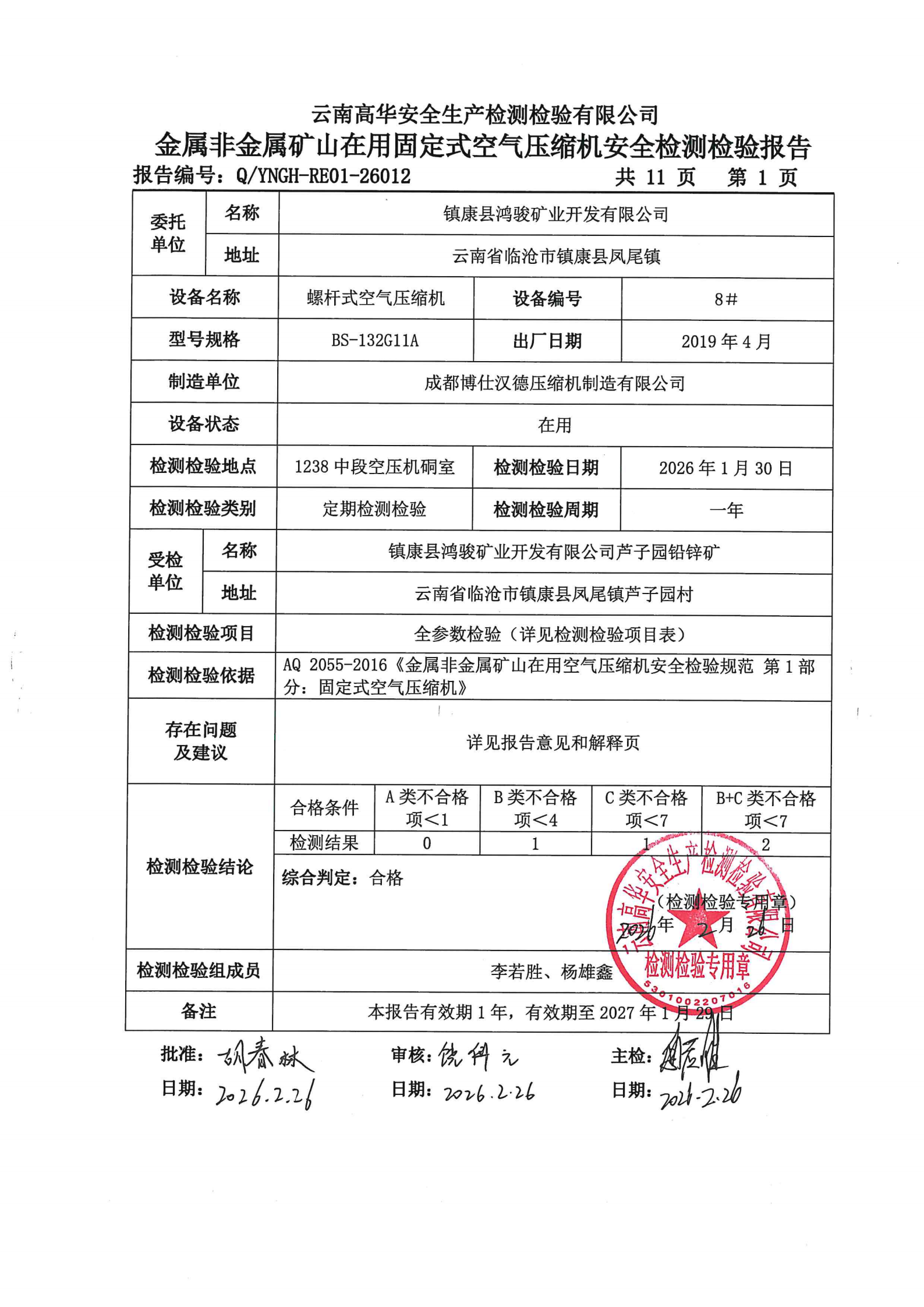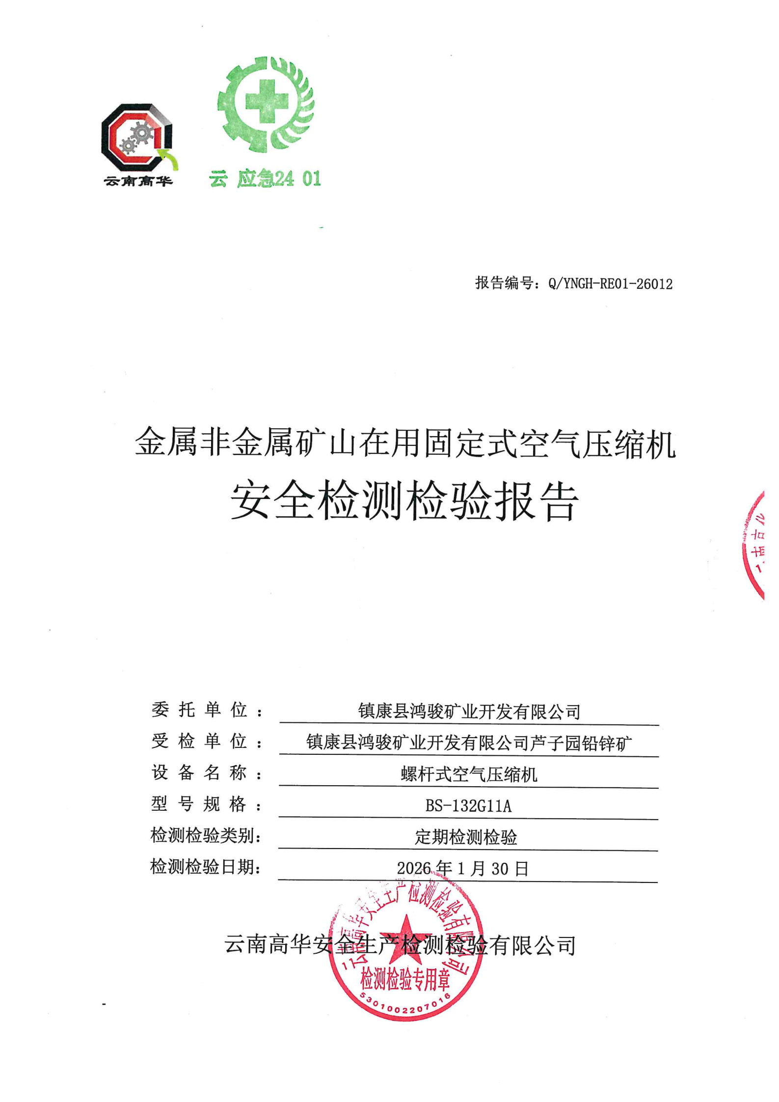 金属非金属矿山在用固定式空气压缩机安全检测检验报告