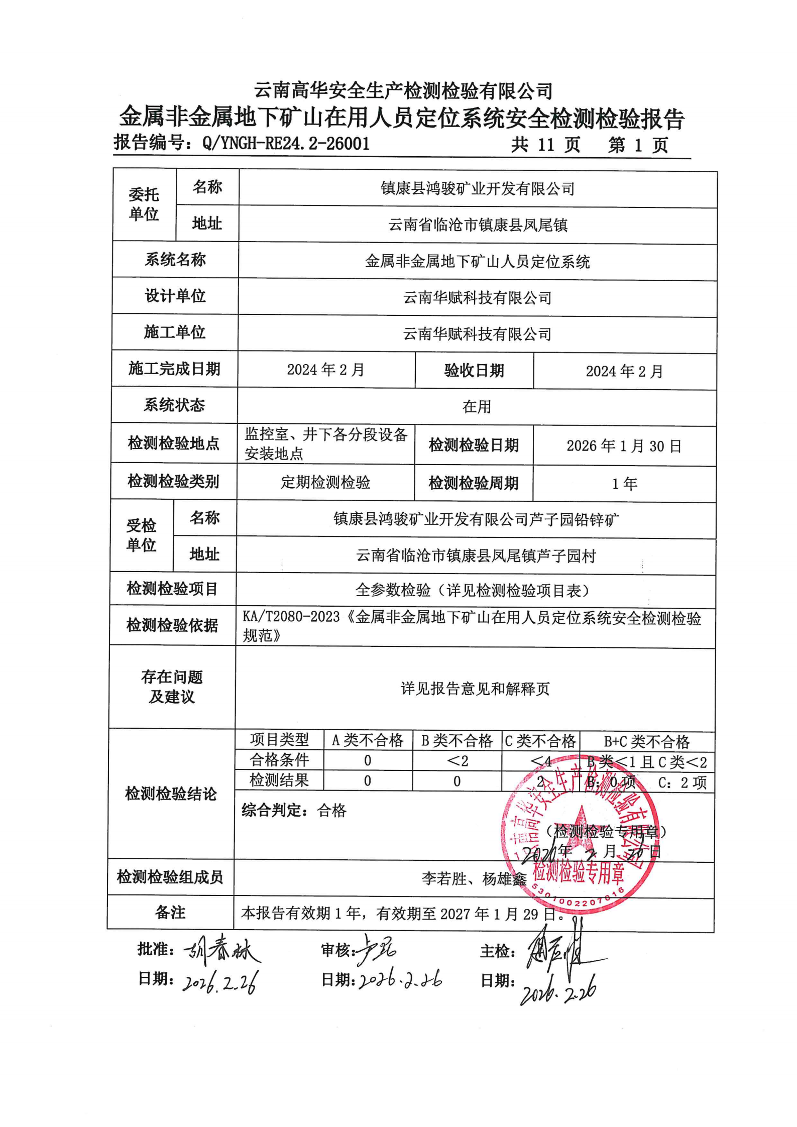 金属非金属地下矿山在用人员定位系统安全检测检验报告