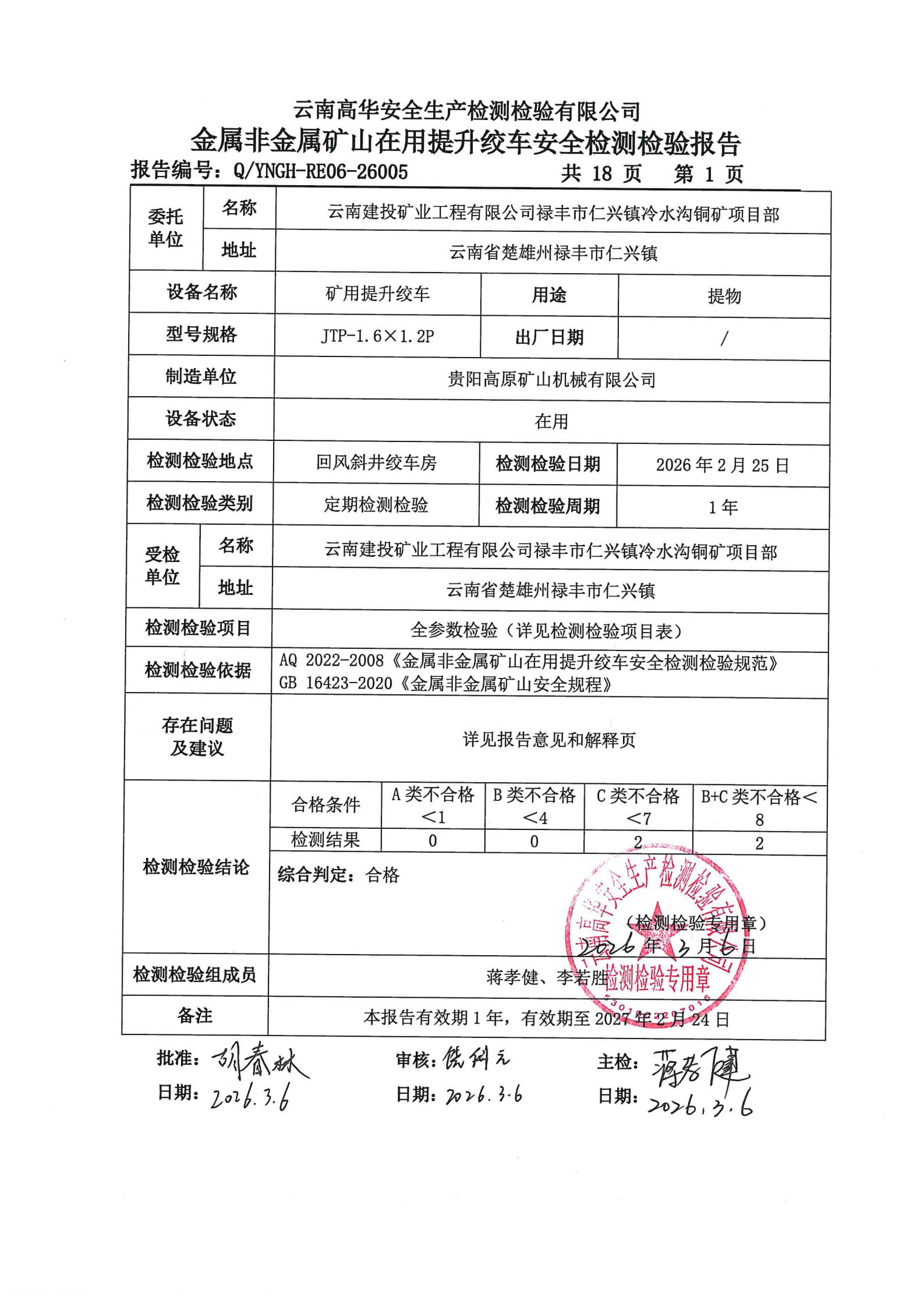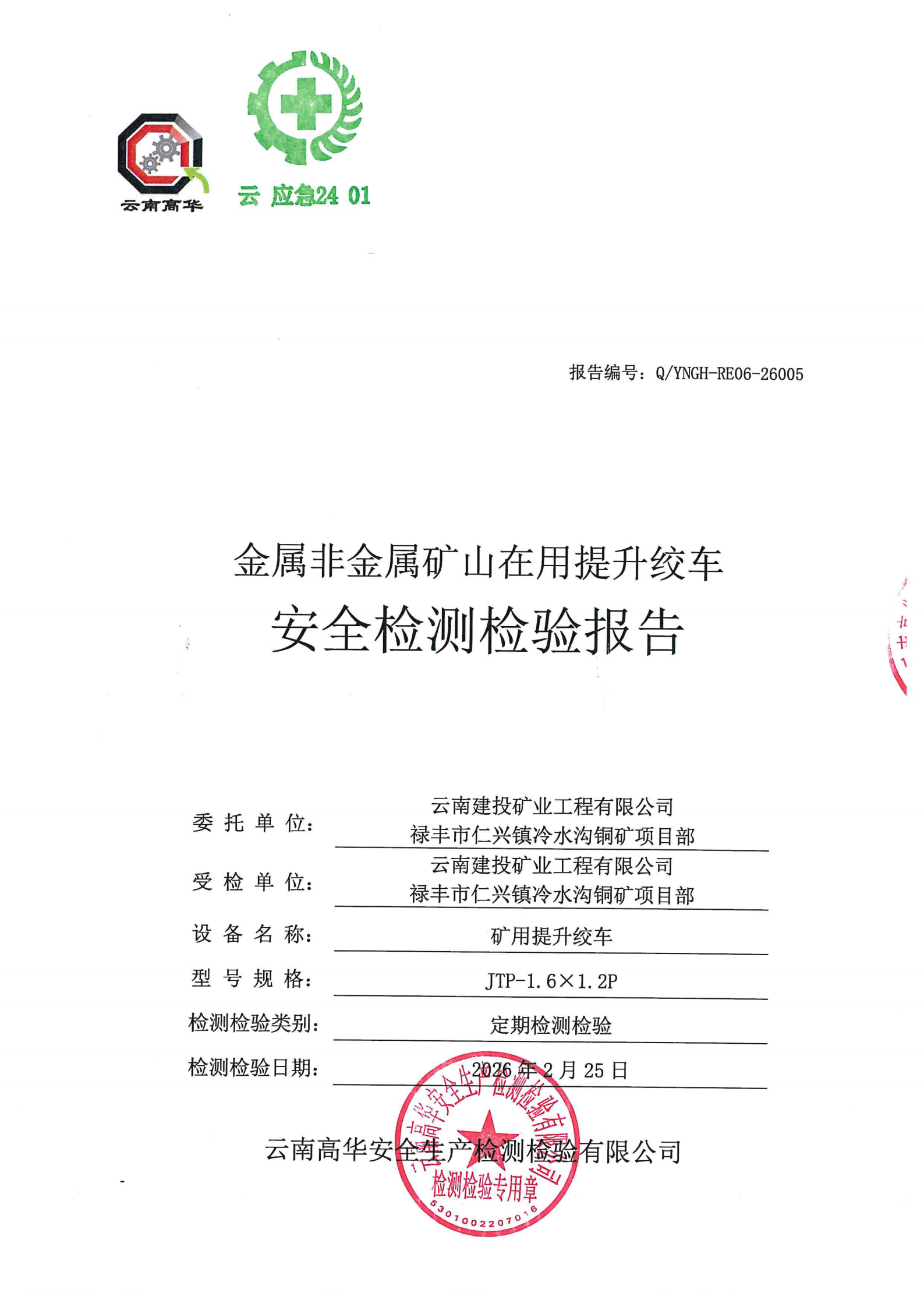 金属非金属矿山在用提升绞车安全检测检验报告
