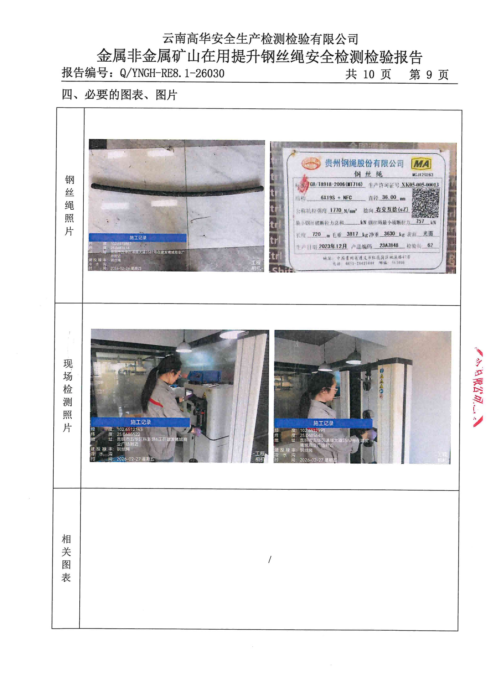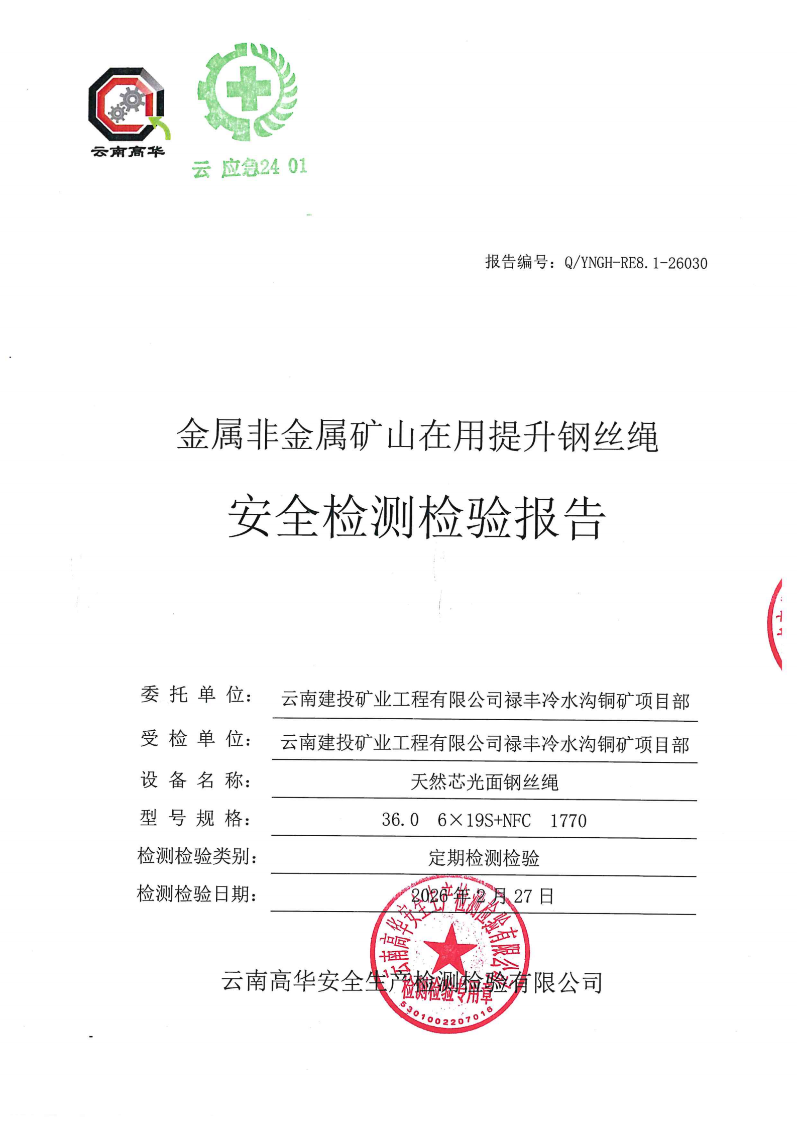 金属非金属矿山在用提升钢丝绳安全检测检验报告