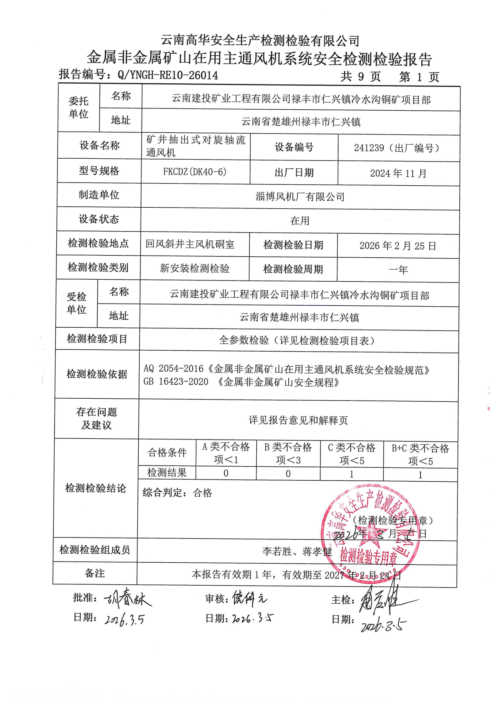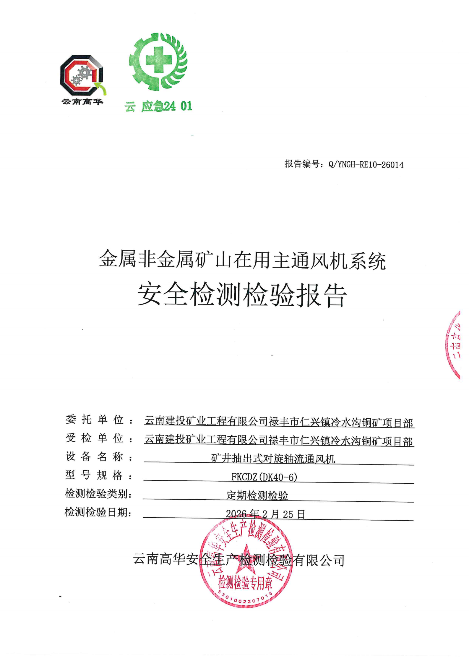 金属非金属矿山在用主通风机系统安全检测检验报告