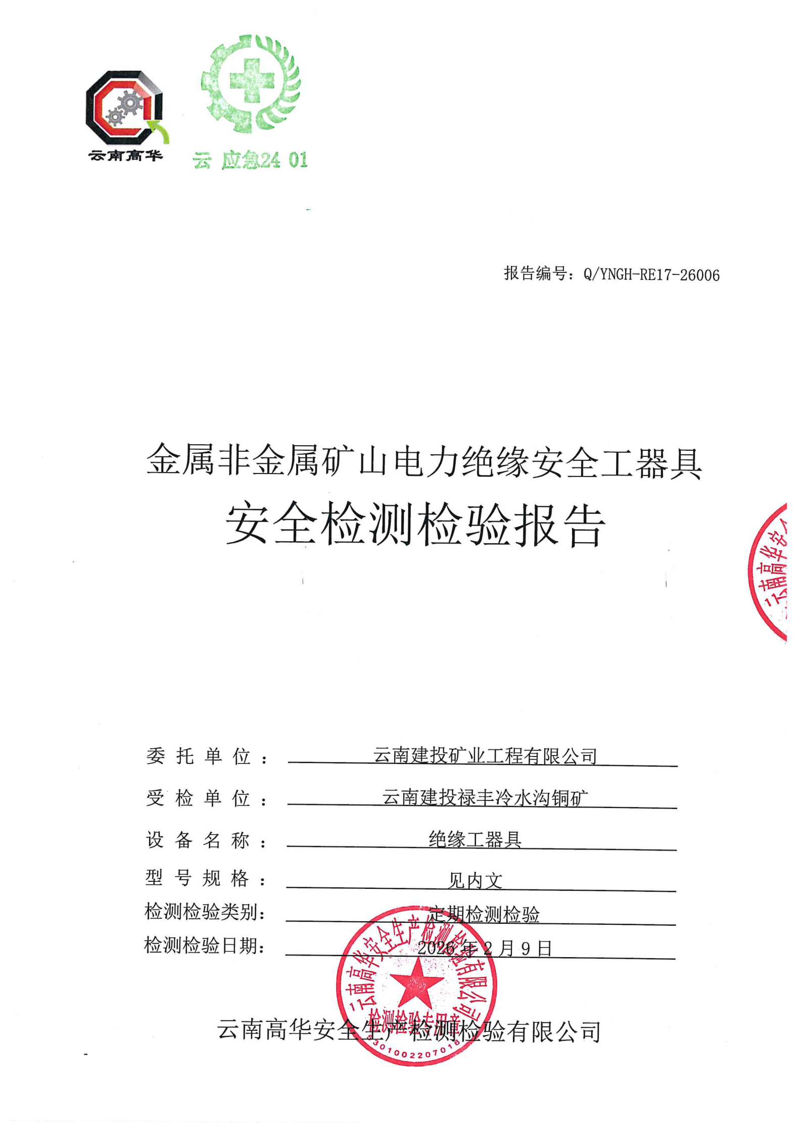 金属非金属矿山电力绝缘安全工器具安全检测检验报告