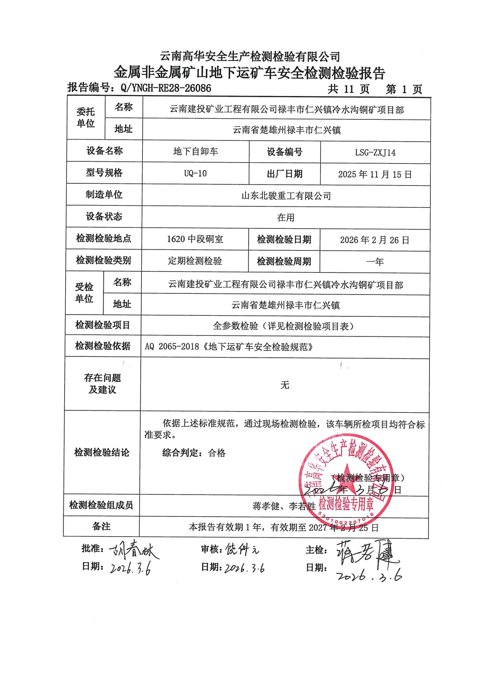 金属非金属露天矿山在用矿用自卸汽车安全检测检验报告