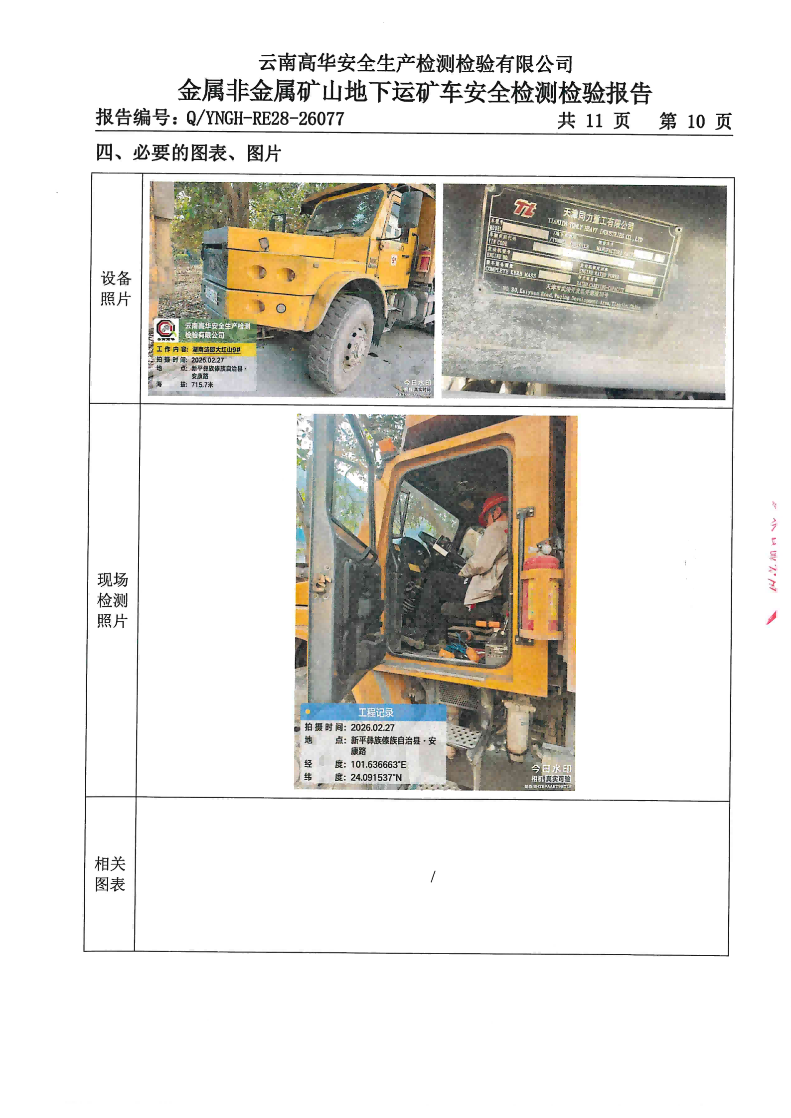 金属非金属露天矿山在用矿用自卸汽车安全检测检验报告