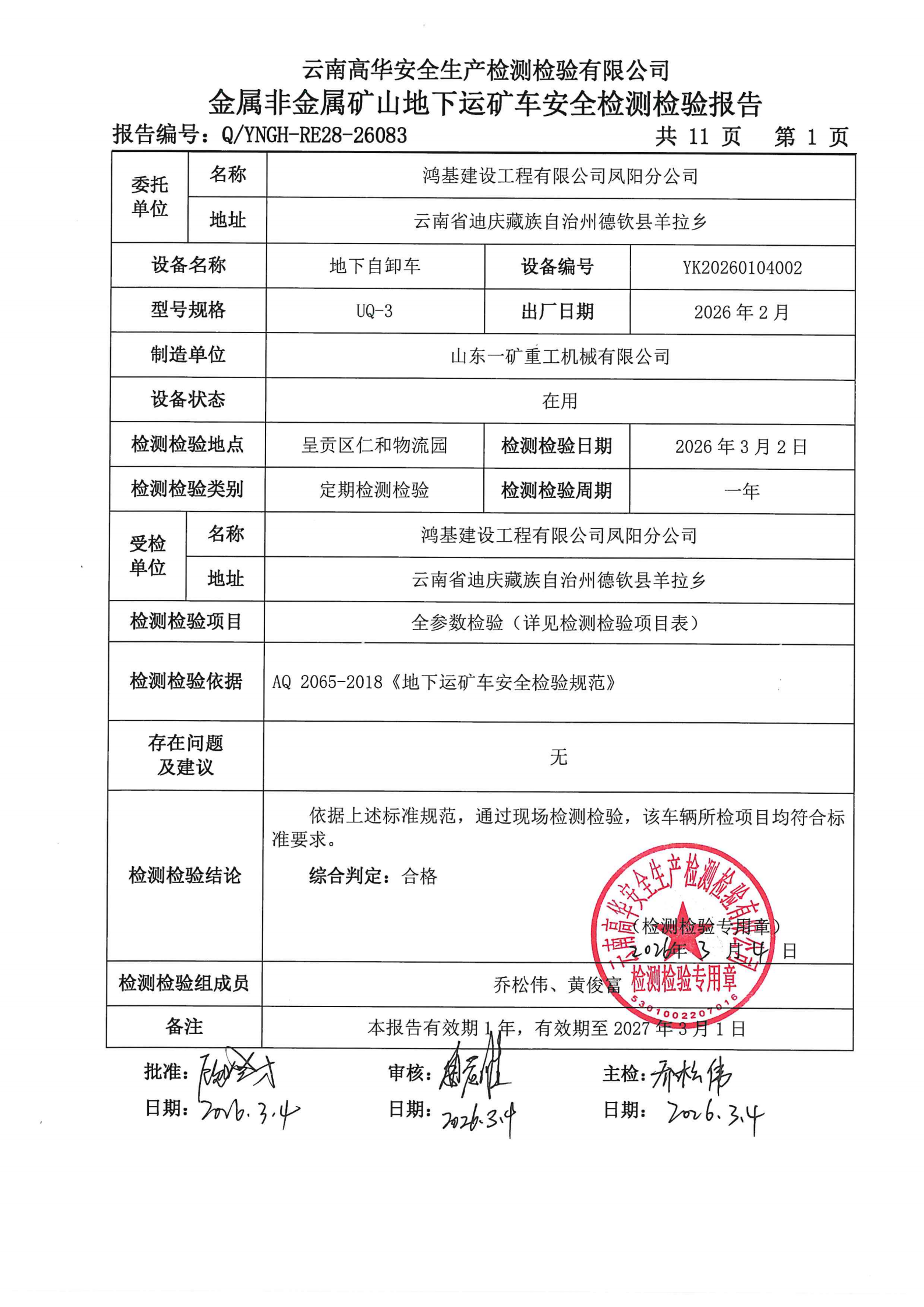 金属非金属露天矿山在用矿用自卸汽车安全检测检验报告