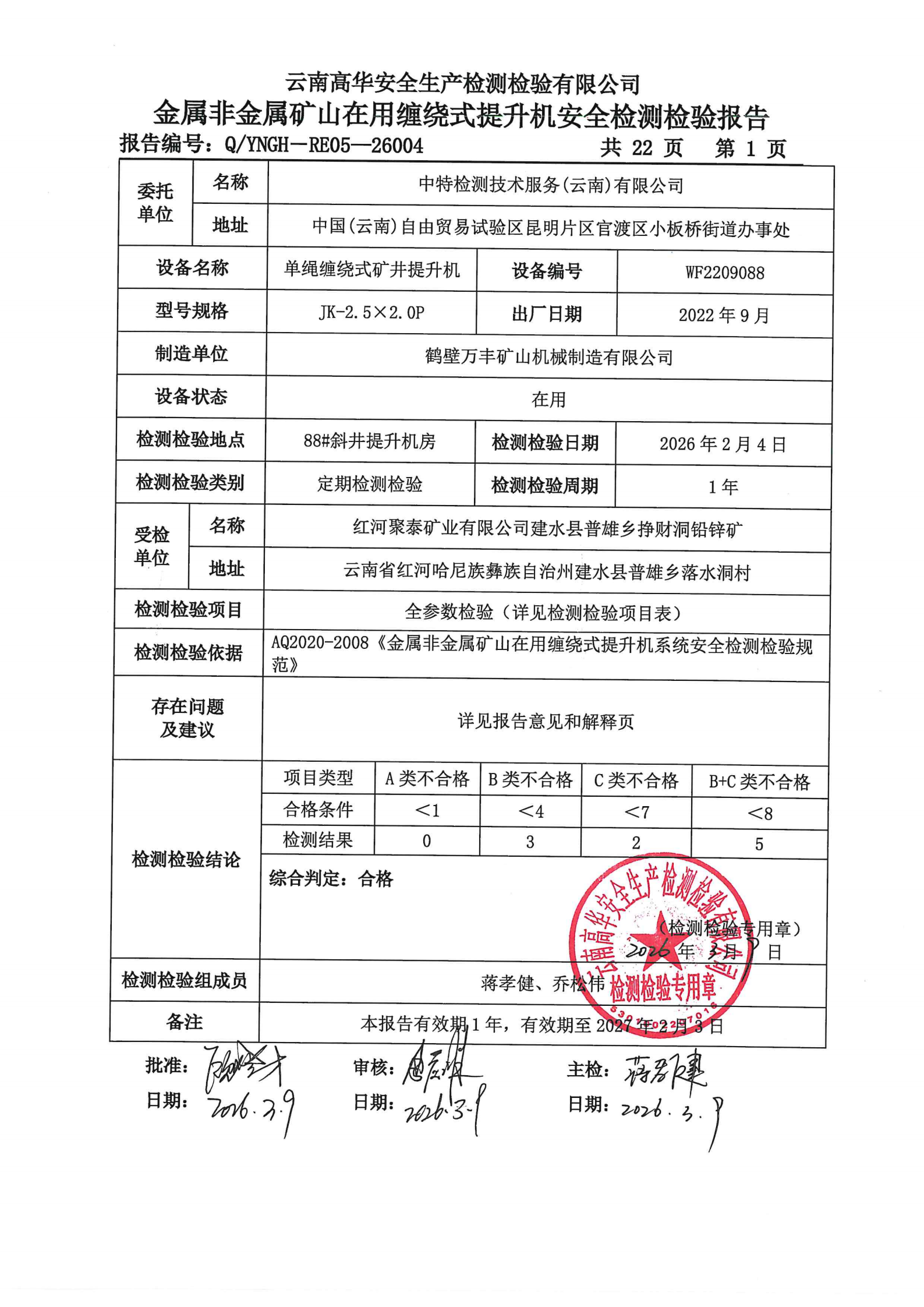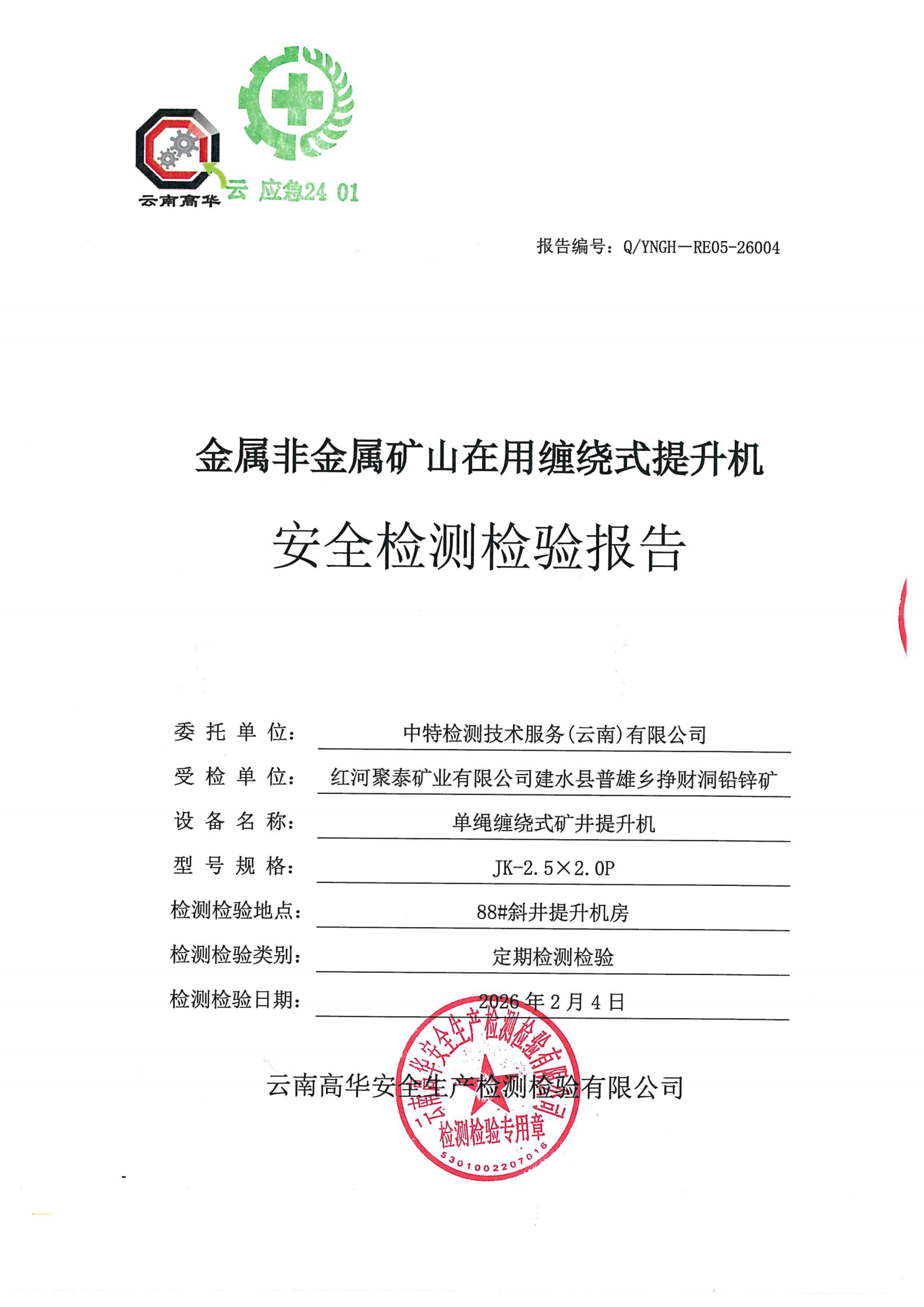 金属非金属矿山在用缠绕式提升机安全检测检验报告