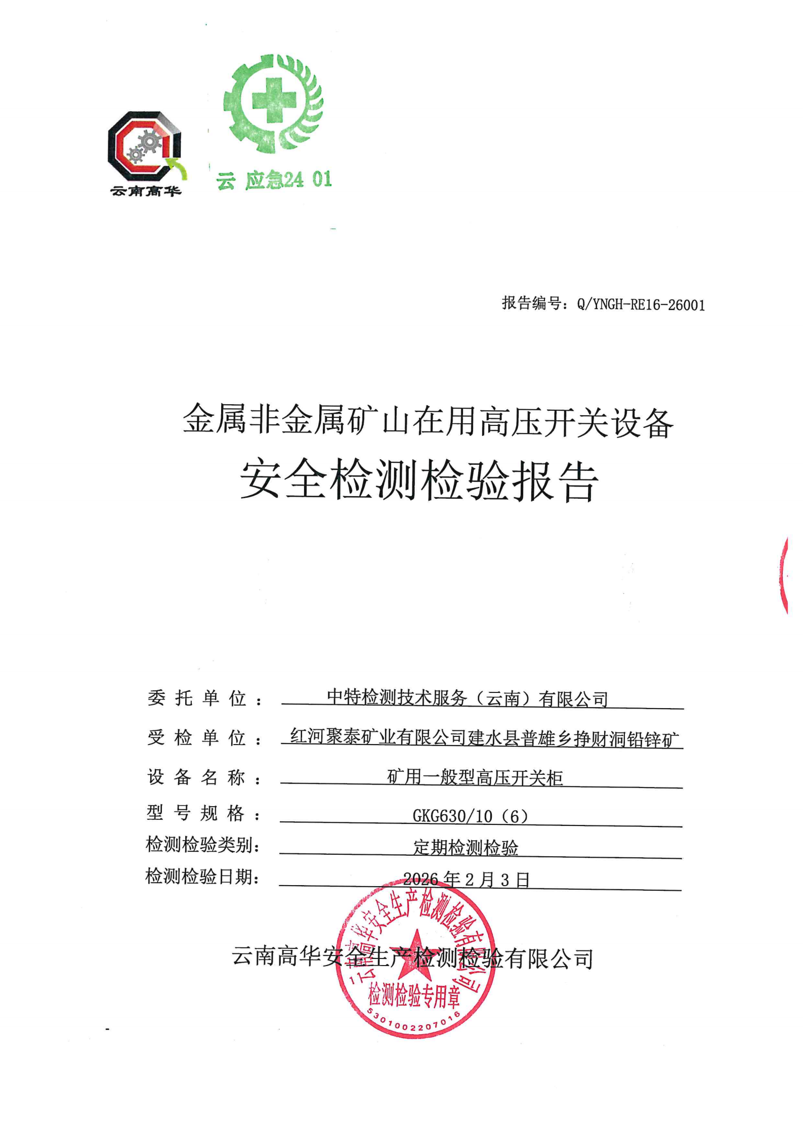 金属非金属矿山在用高压开关设备安全检测检验报告