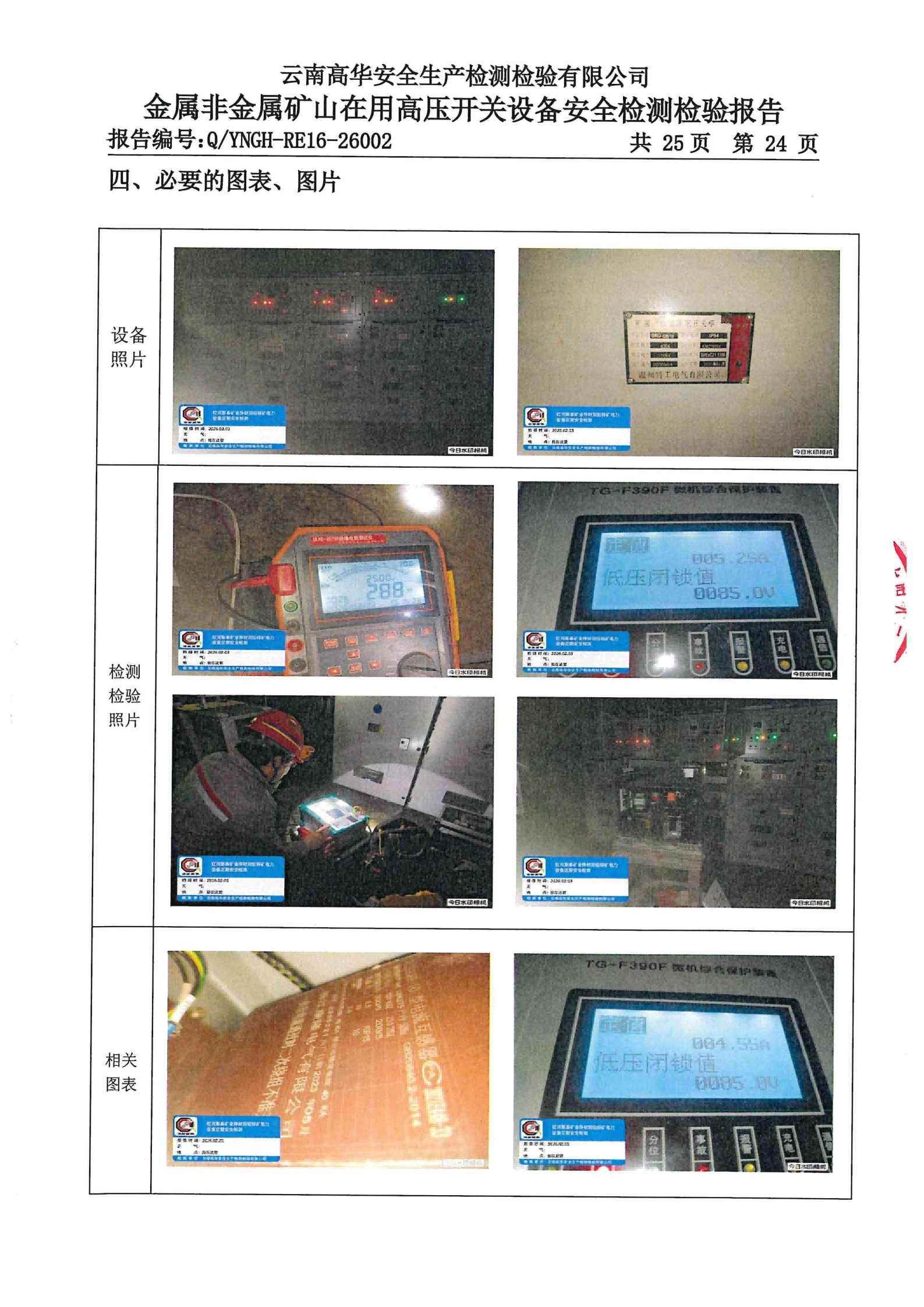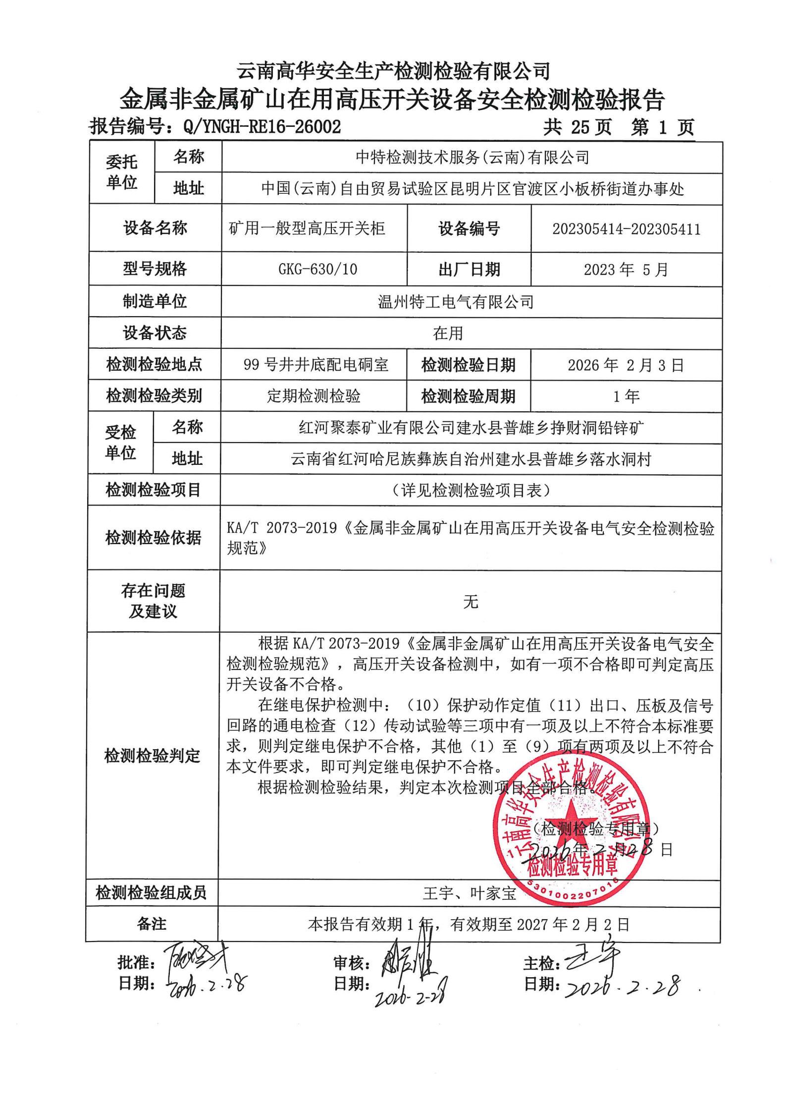 金属非金属矿山在用高压开关设备安全检测检验报告