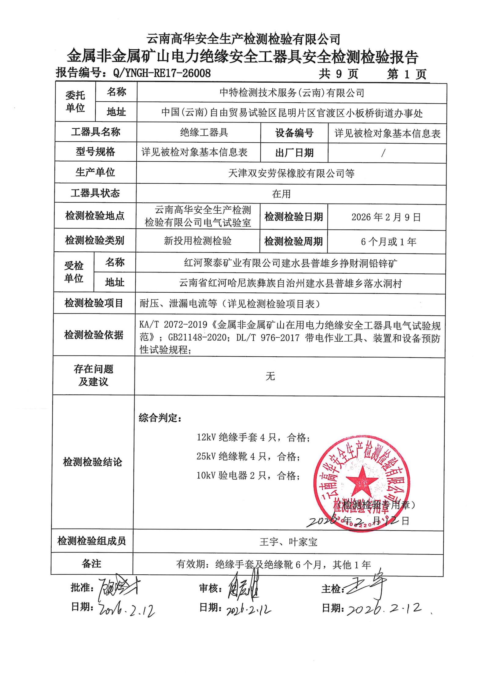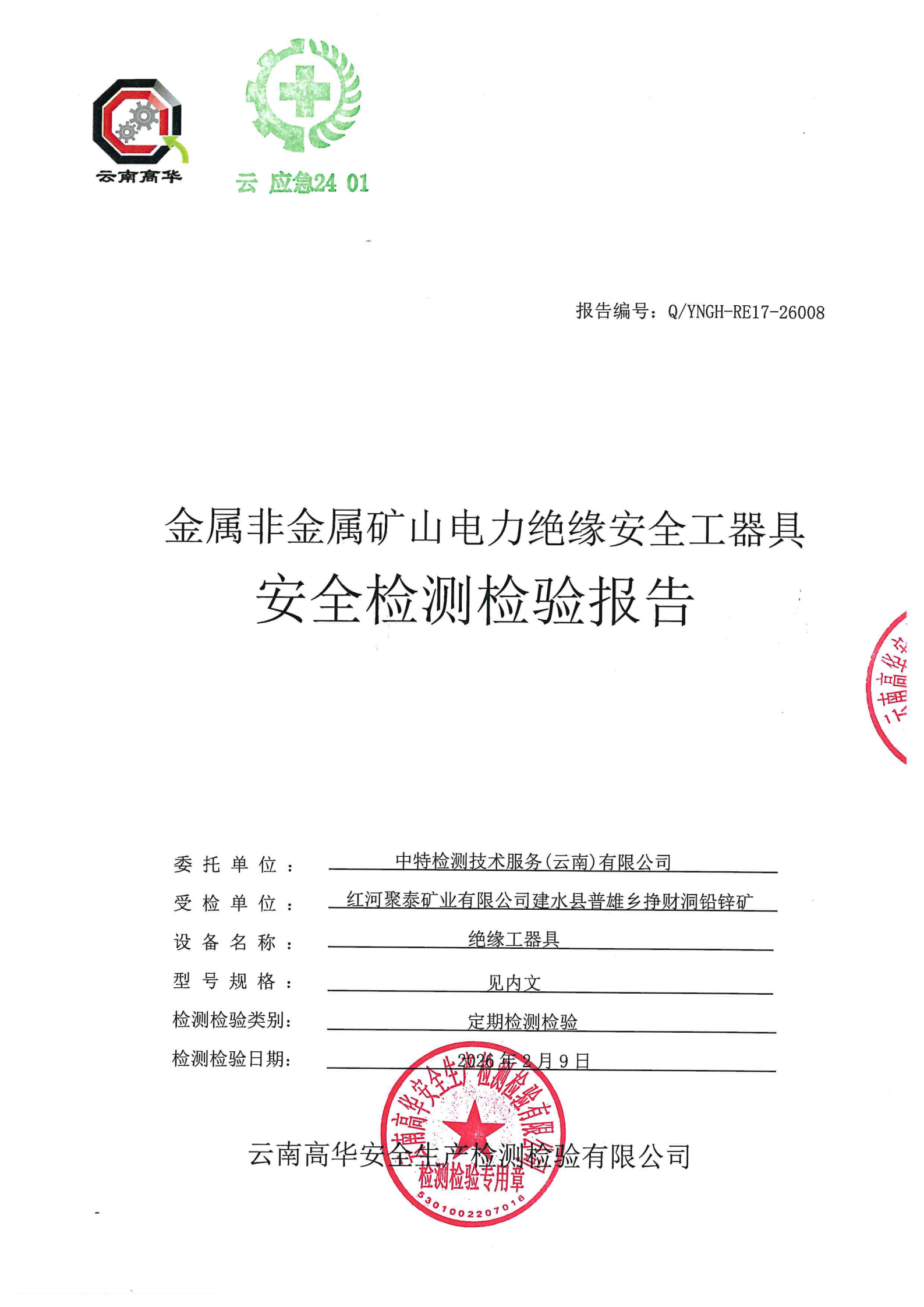 金属非金属矿山电力绝缘安全工器具安全检测检验报告
