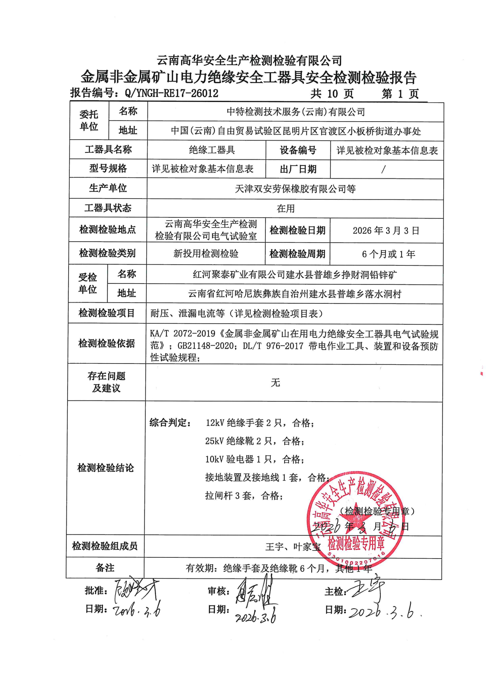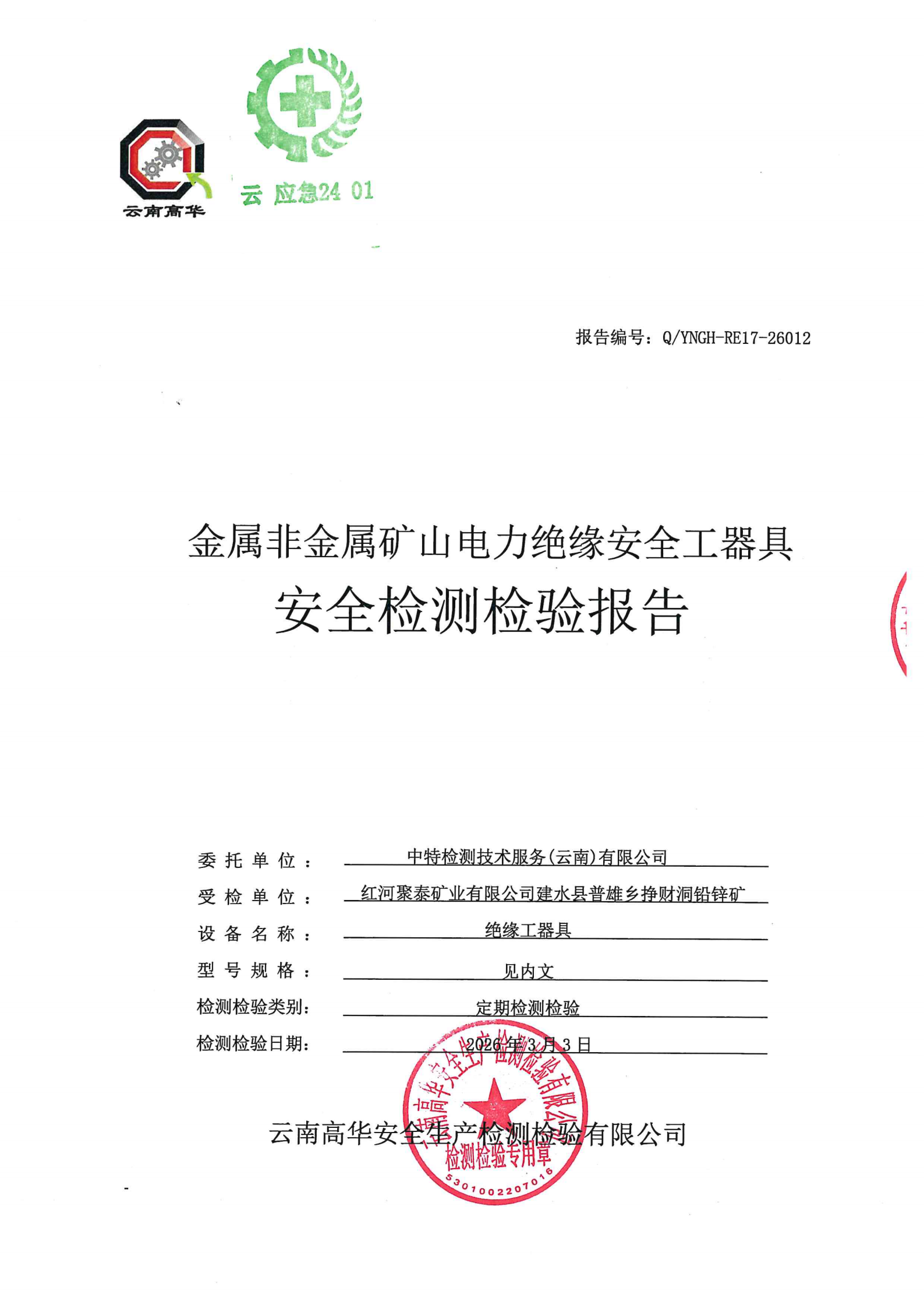 金属非金属矿山电力绝缘安全工器具安全检测检验报告