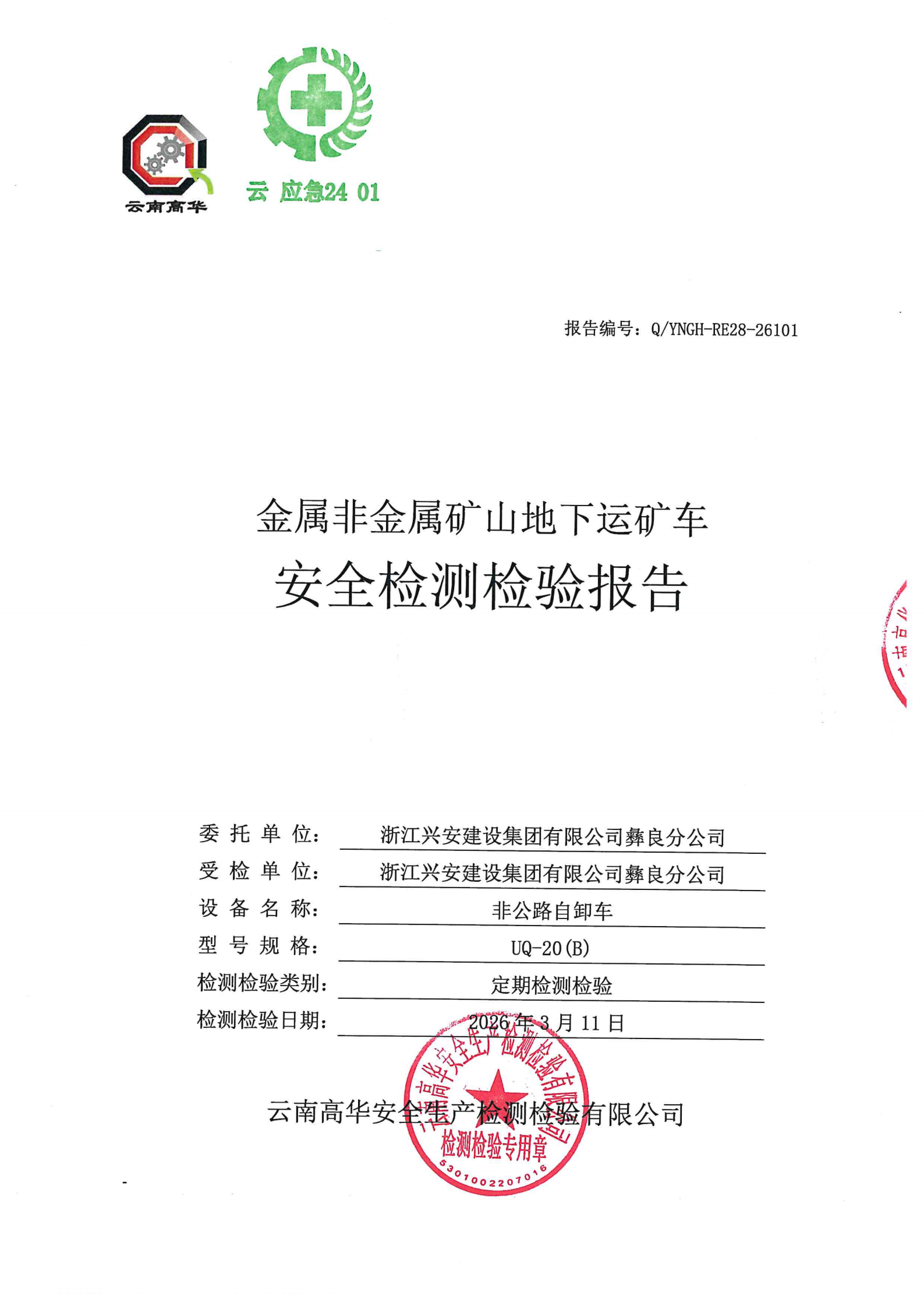 金属非金属地下矿山无轨运人车辆安全检测检验报告