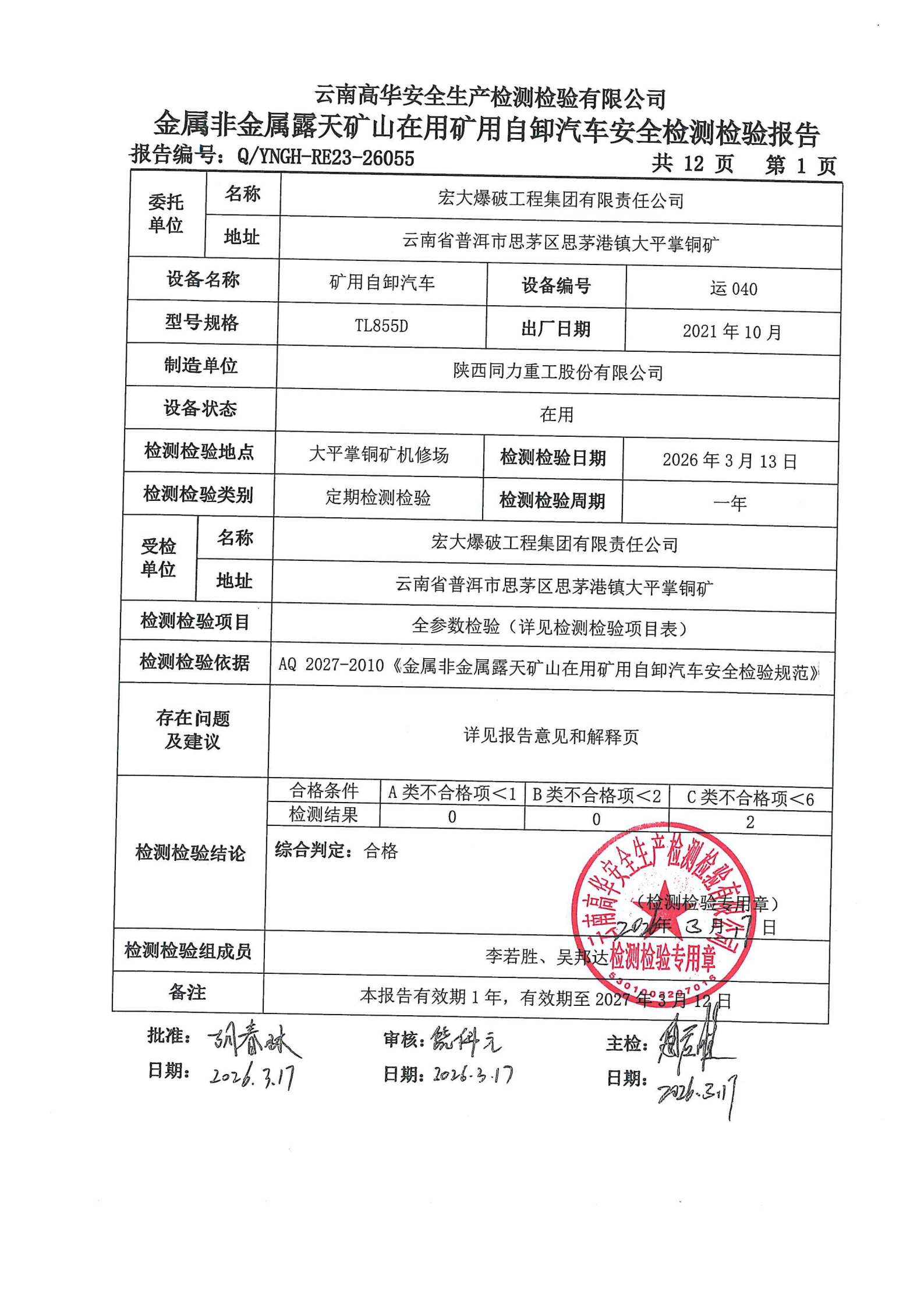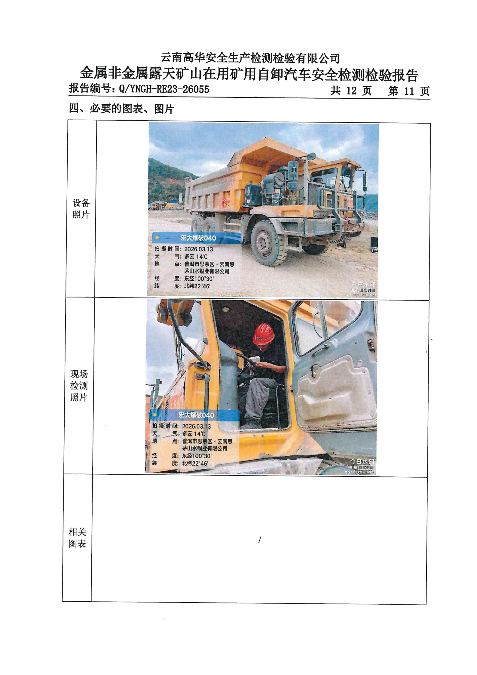 金属非金属露天矿山在用矿用自卸汽车安全检测检验报告