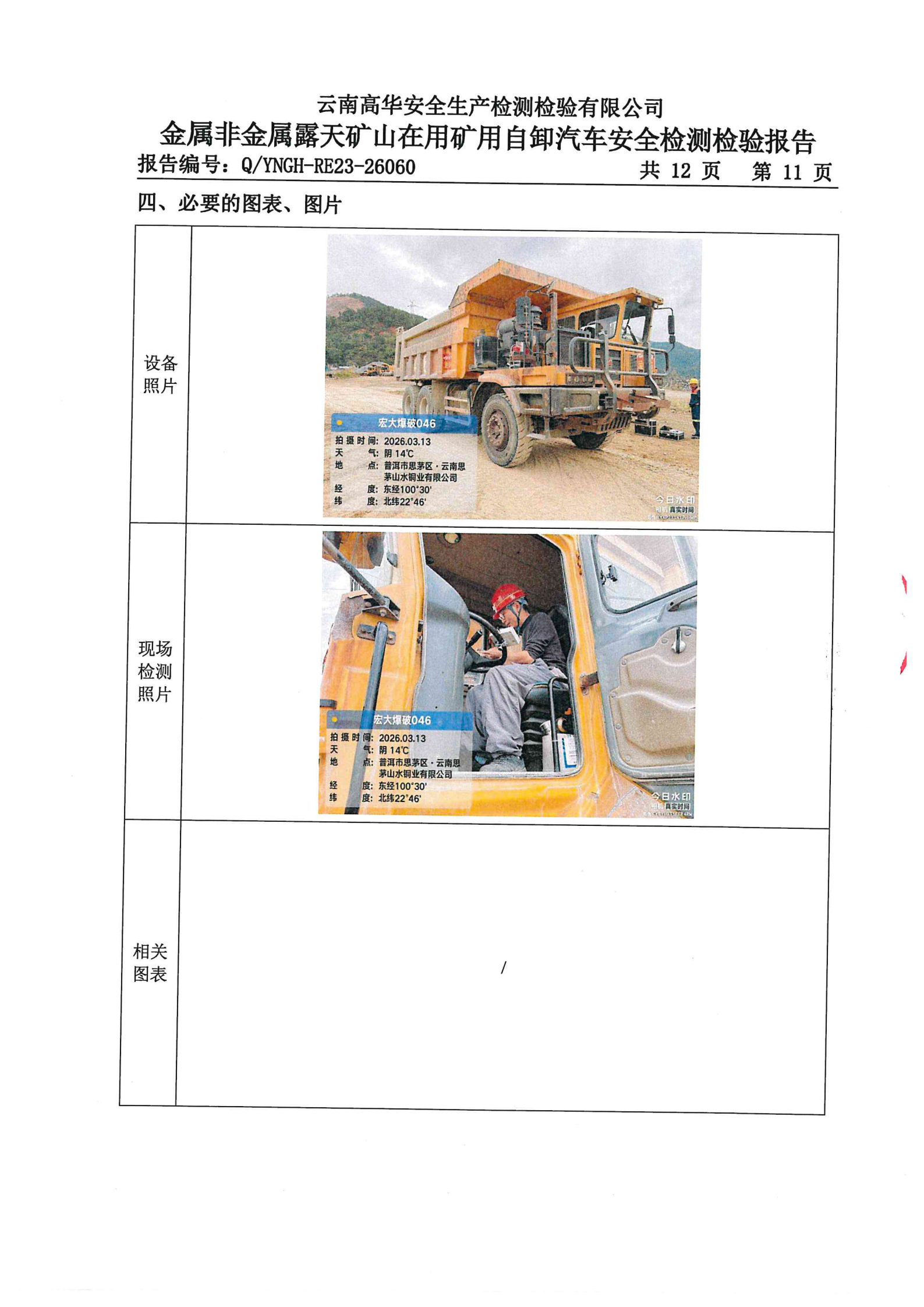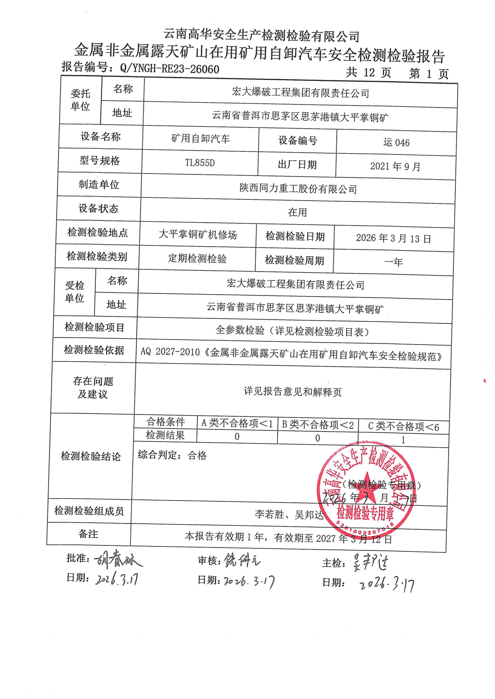 金属非金属露天矿山在用矿用自卸汽车安全检测检验报告