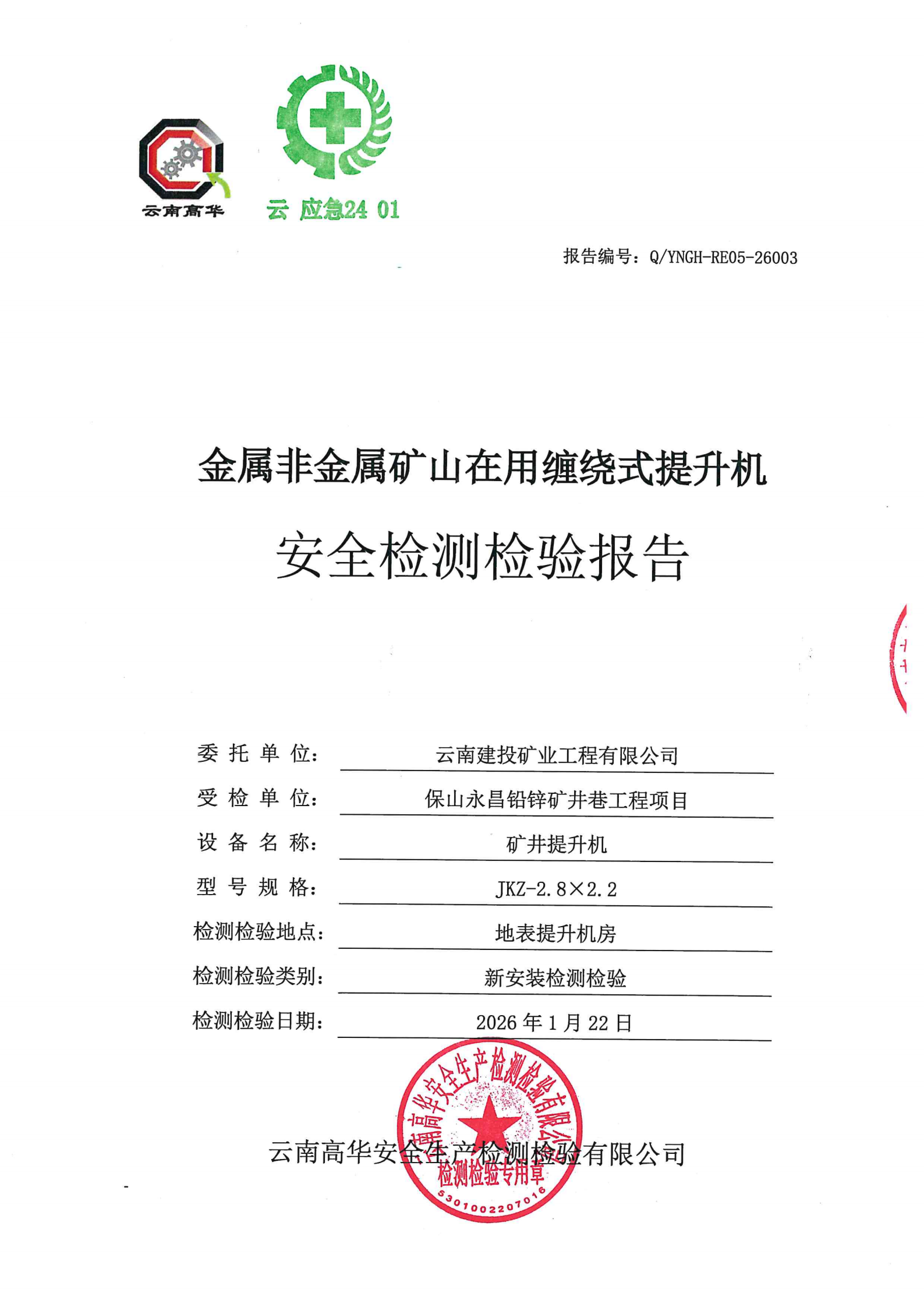金属非金属矿山在用缠绕式提升机安全检测检验报告