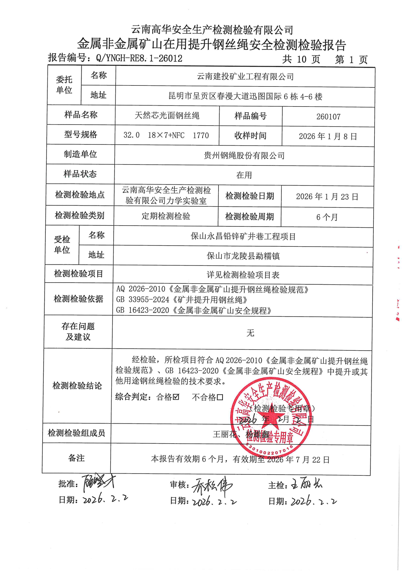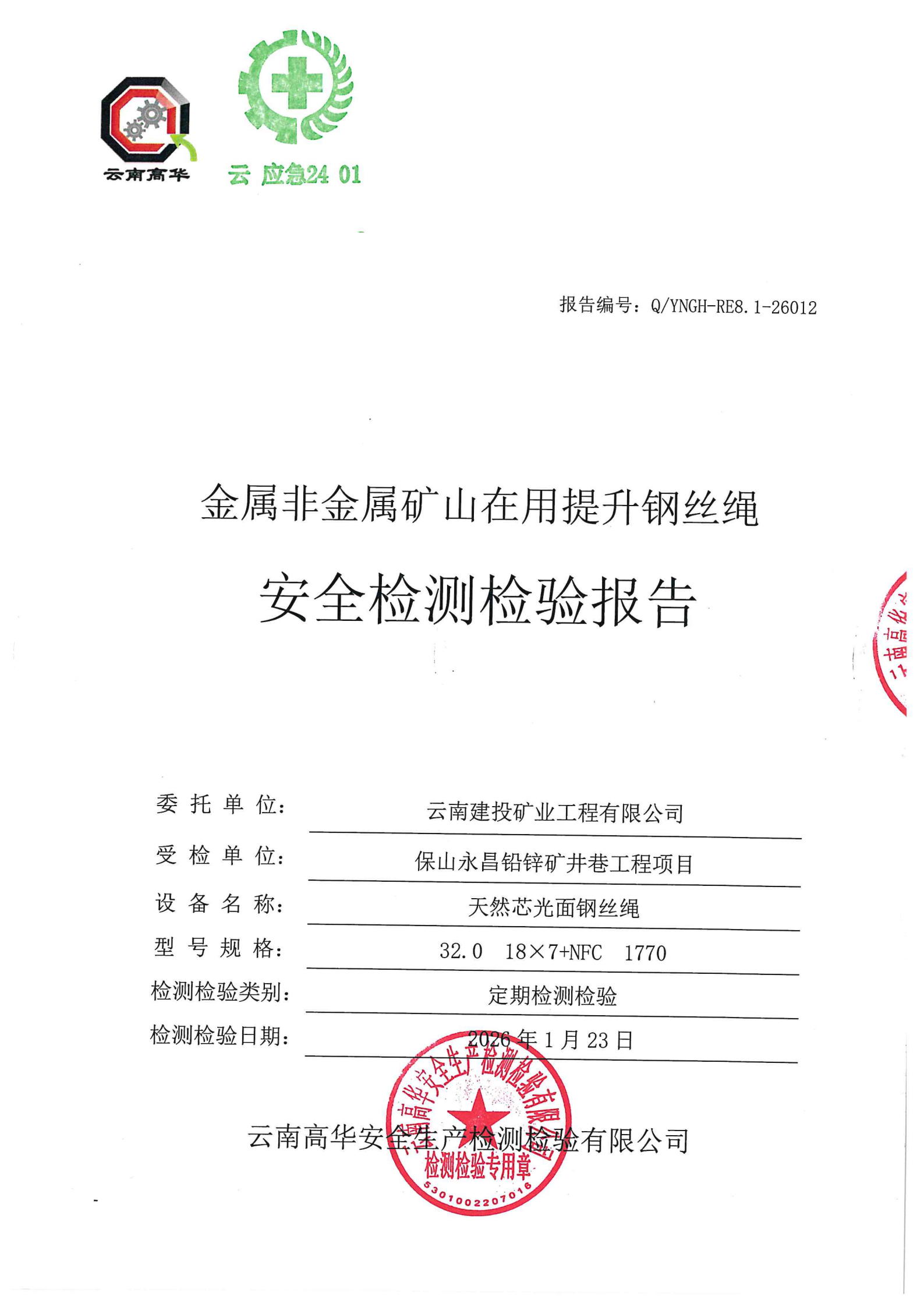 金属非金属矿山在用提升钢丝绳安全检测检验报告